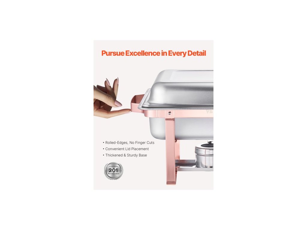 Sada na ohřívání nádobí Chafing Dish Buffet, 8 qt 2 balení, nerezová ocelová podnosná nádoba se 2 pánvemi plné velikosti, obdélníkový ohřívač na catering s víkem, stojan na pánve s vodou, držák na palivo, pro svatební hostinu, banket, růžové zlato