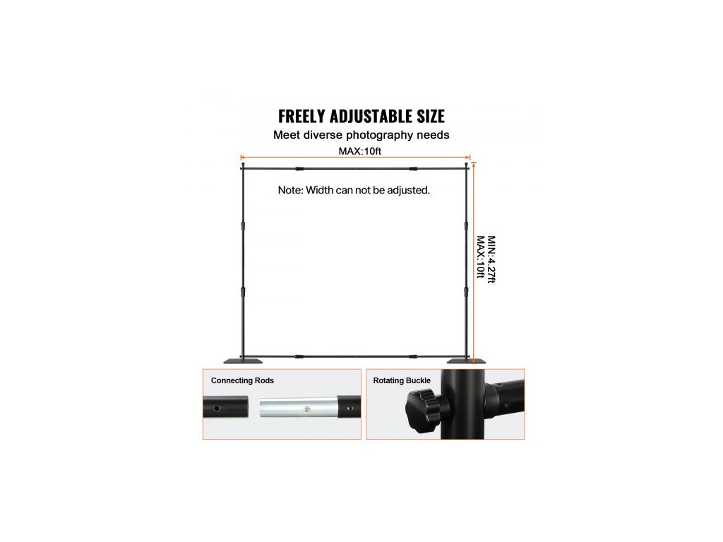 Maximální nosnost: 5 kg,Doporučená nosnost: <3 kg,Číslo modelu položky: ZG-18TL,Rozměr látky na pozadí: 3048 x 3048 mm,Rozměry produktu: 3148 x 420 x 3048 mm,Čistá hmotnost: 32,19 g 14,6 kg