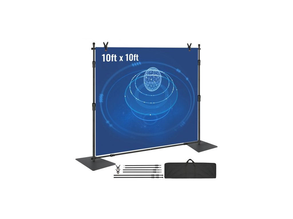 Sada 304,8 x 304,8 cm na trubky a závěsy, odolný stojan na pozadí s podstavcem z uhlíkové oceli, nastavitelná podpěra pozadí se 6 svorkami a přepravní taškou pro svatby, večírky, akce, fotografování a výstavy