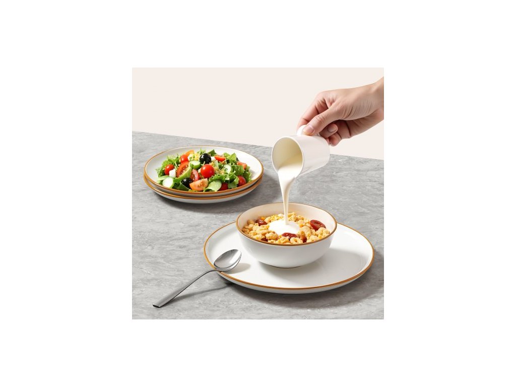 Rozměry misky: 6,4 x 2,4 x 2,8 palce / 162 x 60 x 71 mm,Rozměry talíře: 10,6 x 1,0 x 8,3 palce / 270 x 25 x 210 mm,Počet misek: 4,Počet talířů: 4,Barva: Slonovinová,Číslo modelu položky: HLSS-01,Rozměry salátového talíře: 8,6 x 0,9 x 6,1 palce / 218 x 23 x 155 mm, Hmotnost výrobku: 7,5 kg, Materiál: Keramika, Počet salátových talířů: 4, Objem misky: 709,8 ml