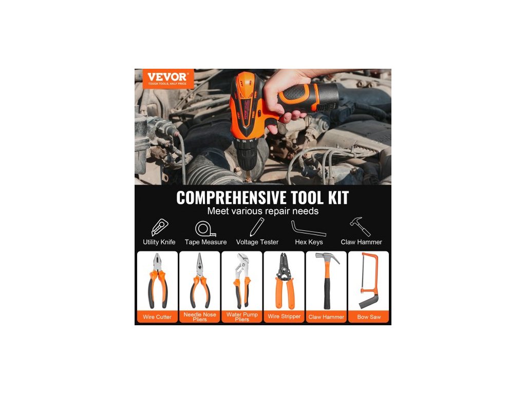Sada nářadí , 146dílná sada ručního nářadí pro domácnost, s elektrickou vrtačkou a přenosným pouzdrem na nářadí, vysoce kvalitní ocel, pro údržbu domácnosti, kutilské projekty a opravy automobilů