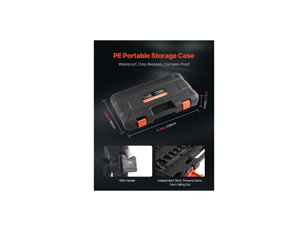 Barva pouzdra: Černá,Hlavní materiály: S2 (bity) + CRV 50BV30 (hlavní hlavice),Tvrdost bitů: 56-62 HRC,Tvrdost nástrčných hlavic: 38-42 HRC,Číslo modelu položky: 34 ks 34T,Konfigurace produktu: 34dílná sada bitů Torx,Materiál pouzdra: PE,Čistá hmotnost: 3,37 lbs / 1,53 Rozměry pouzdra (kg): 13,31 x 7,68 x 2,1 palce / 338 x 195 x 53 mm