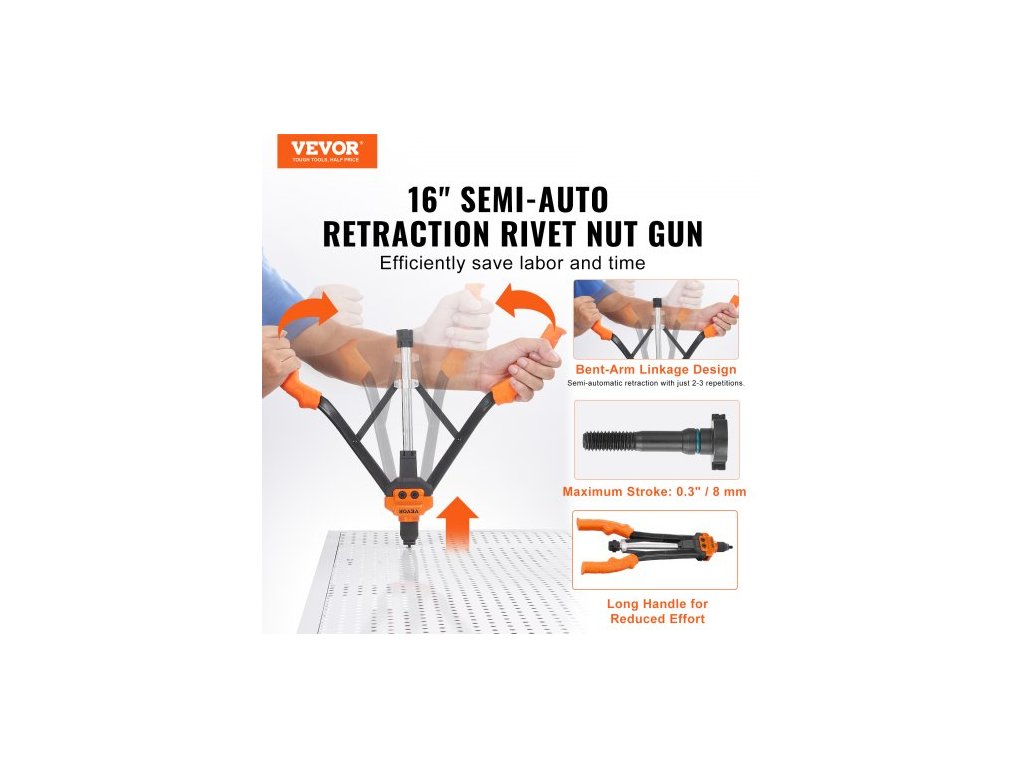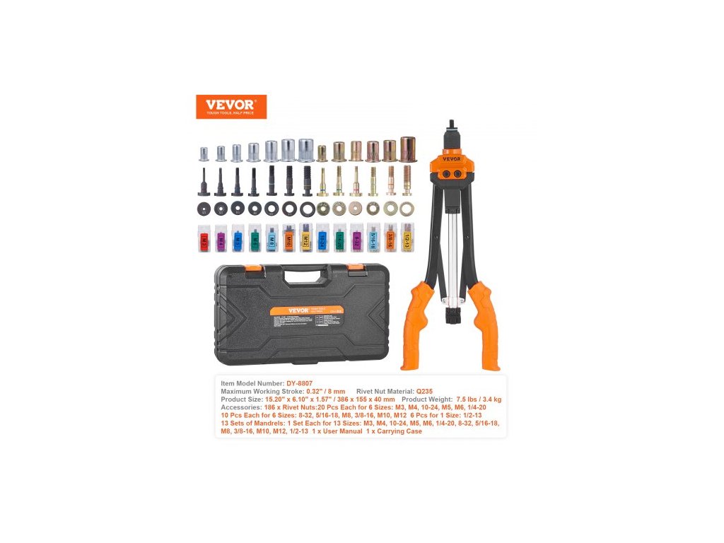 Materiál nýtovací matice: Q235,Číslo modelu položky: DY-8807,Produkt Hmotnost: 3,4 kg, Maximální pracovní zdvih: 8 mm, Rozměry výrobku: 386 x 155 x 40 mm