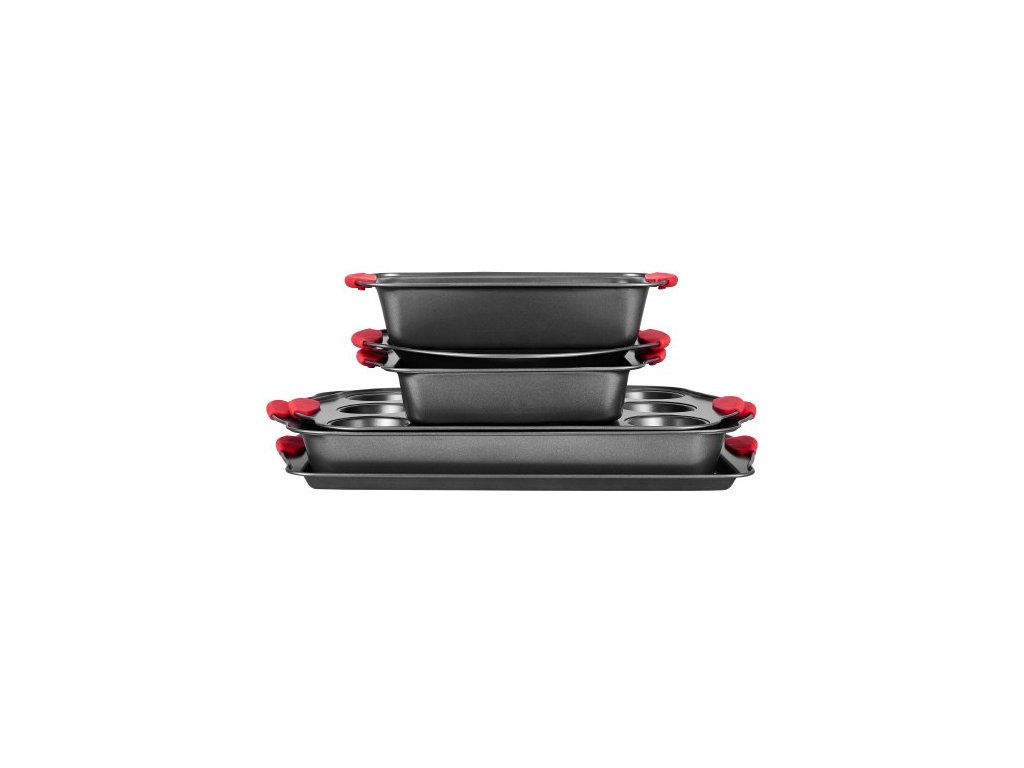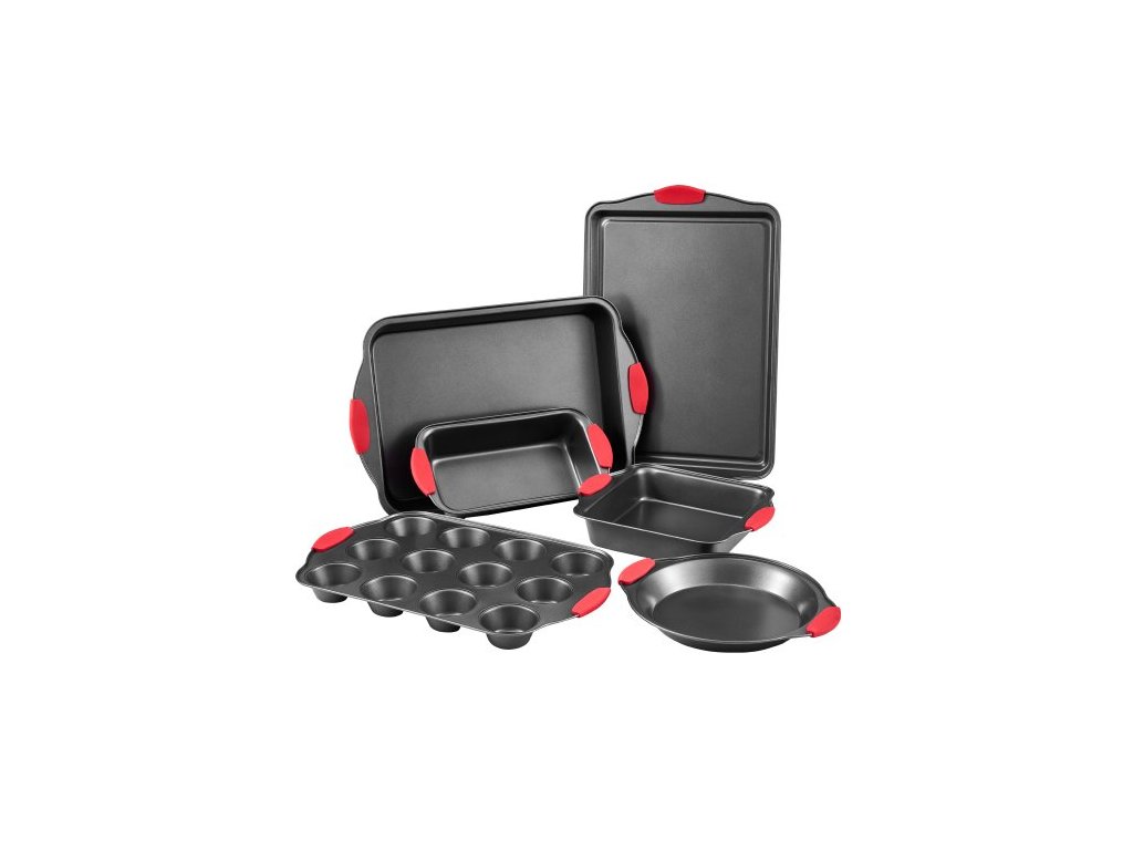 Sada pekáčů , 6dílná, plechy a tácy z uhlíkové oceli s nepřilnavým povrchem, stohovatelné sady na pečení do kuchyňské trouby se silikonovými rukojeťmi, snadno se čistí, na pečení sušenek, dortů, muffinů
