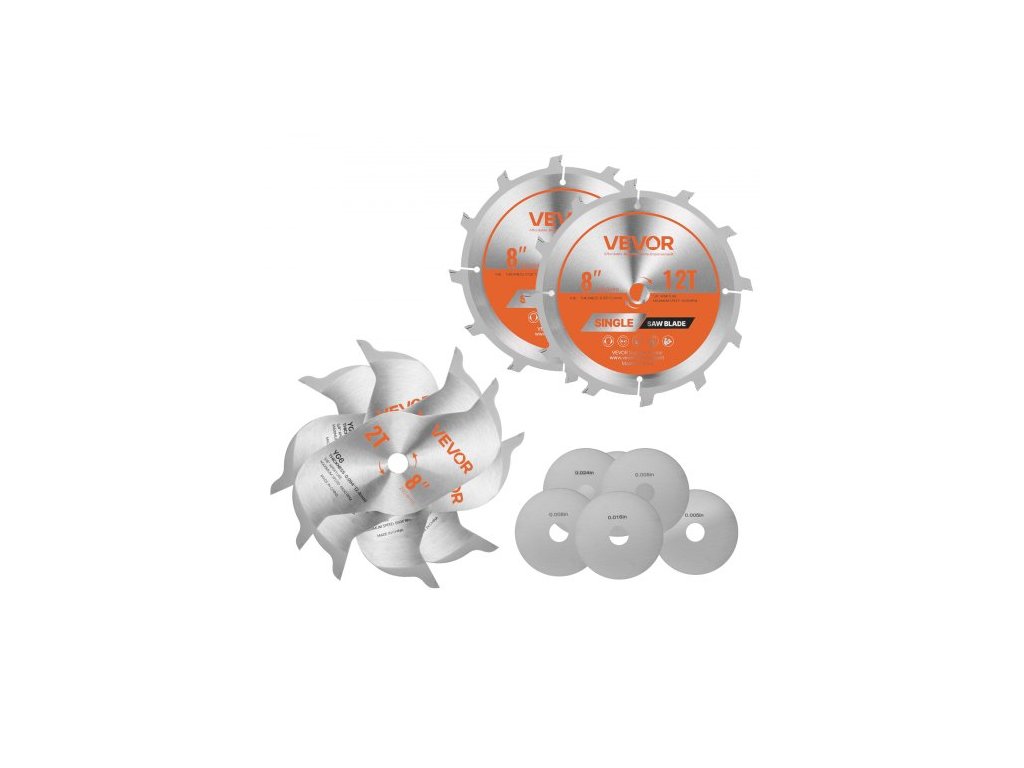 Materiál kotouče: 65Mn,Typ kotouče: Kov,Hlavní funkce: Řezání dřeva,Maximální rychlost: 6500 ot/min,Číslo modelu položky: 8"-12TDADO,Množství: 7,Rozměry produktu (D x Š x V): 8,0 x 8,0 x 0,5 palce / 203,2 x 203,2 x 12,7 mm,Čistá hmotnost produktu (včetně veškerého příslušenství): 4,19 lbs / 1,902 kg