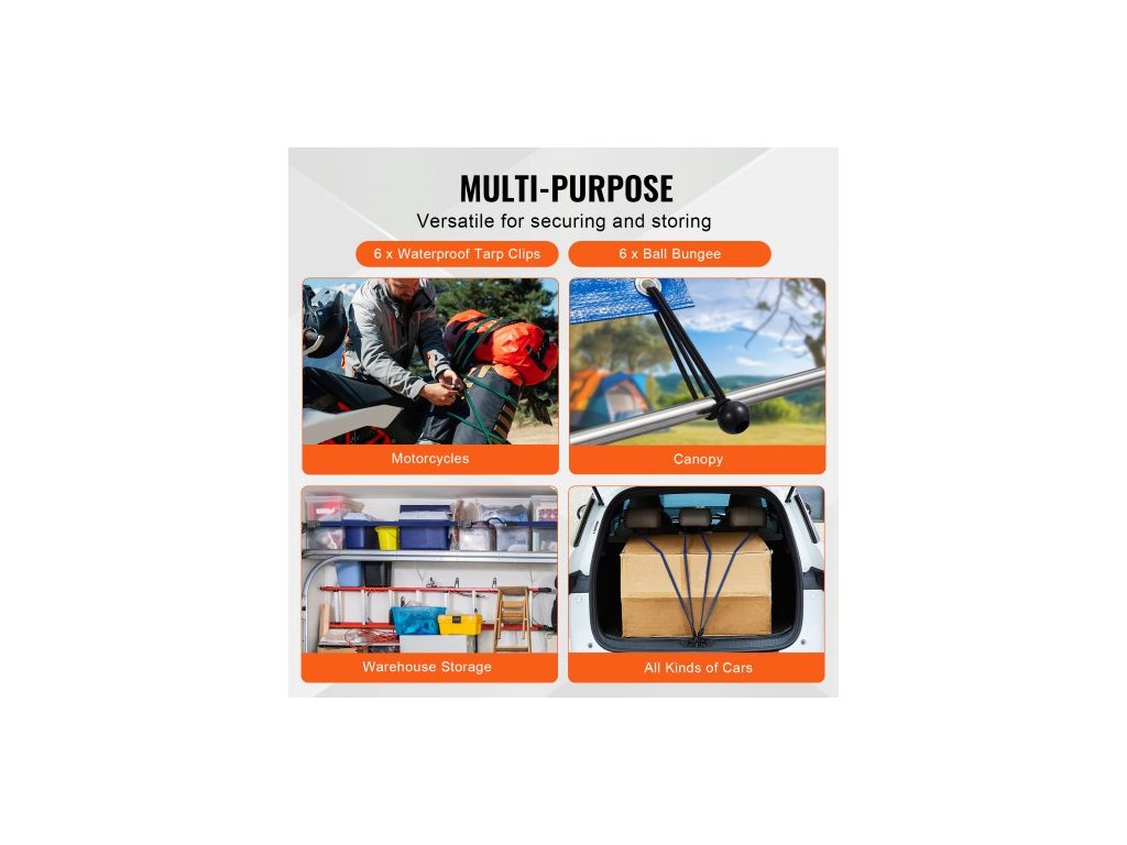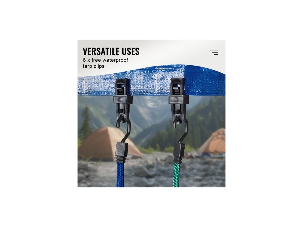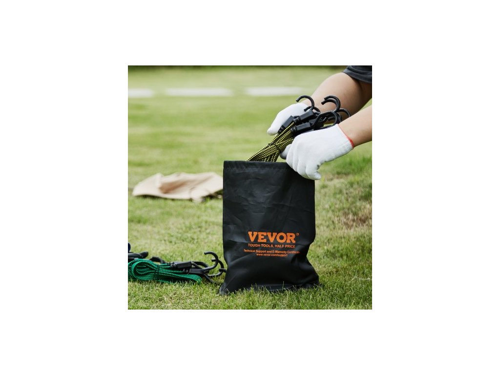 Sada 32 plochých bungee lan , 17mm odolné bungee popruhy s ocelovými J-háky A3, obsahuje 10", 18", 24", 32", 40", bungee lano s přenosným úložným vakem, 6 klipy a úchyty na stříšku