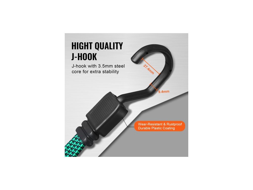 Rozměry produktu: 1020 x 25 x 22 mm,Délky a barvy:,10": 0,5 m (mini úchyty),Šířka háčku: 25 mm,40 ±1" / 1,02 m: 2 m (zelená) x 2,Maximální pružnost:,8": 0,4 m (úchyty na stříšku),Průměr háčku: 3,5 mm,Hmotnost produktu: 1,3 kg, 24 palců: 1,2 m, 18 ±1 palec / 0,46 m: 0,9 m (žlutý) x 6, Typ háčku: J-háček, 32 palců: 1,6 m, 32 ±1 palec / 0,81 m: 1,6 m (červený) x 2,10 ±1 palec / 0,25 m: 0,5 m (černý, mini úvazky, průměr 4 mm) x 6, Množství: 32 ks, Materiál: Polypropylen + guma, 18 palců: 0,9 m, Maximální zatížení: 30 kg, Materiál háčku: Ocel, Model: DJ-FT001, Povrchová úprava: Hladká, 40 palců: 2 m, Kulatý průměr / plochá šířka: 17 mm, 20 mm, 24 ±1 palec / 0,61 m: 1,2 m (modrý) x 4