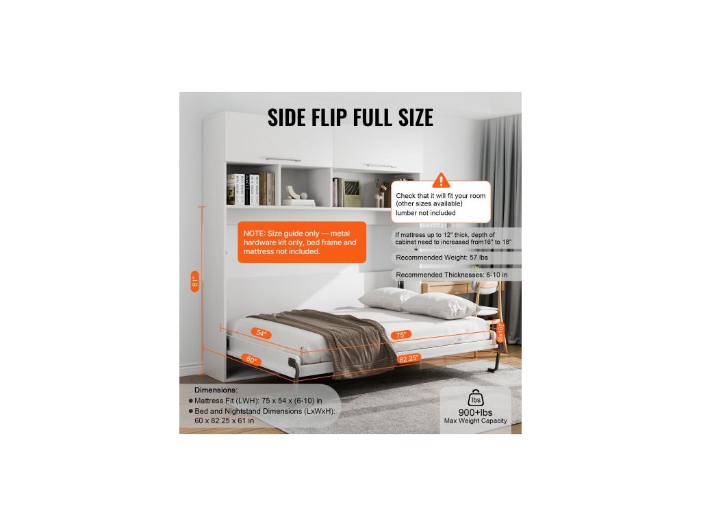 Sada postele Murphy, velikost pro dva, sada mechanického hardwaru pro luxusní nástěnnou postel, pneumatická páková podpěra rámu postele s vysokou nosností, skládací skříňka, nástěnná postel, prostorově úsporný design pro pokoj pro hosty, snadná montáž