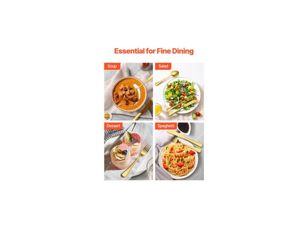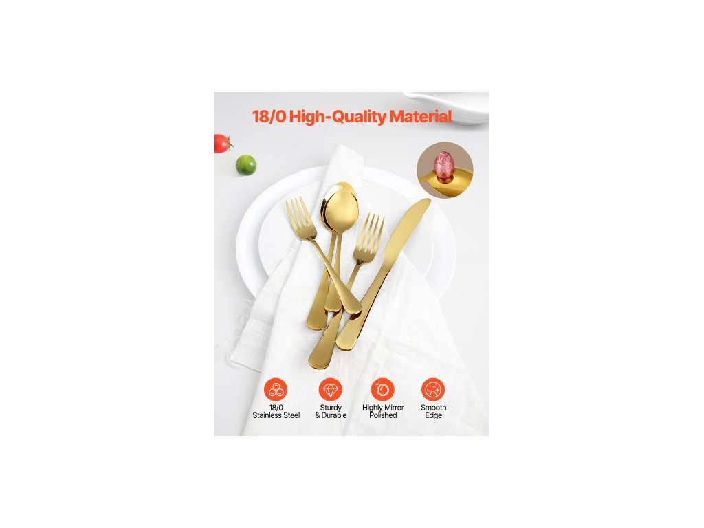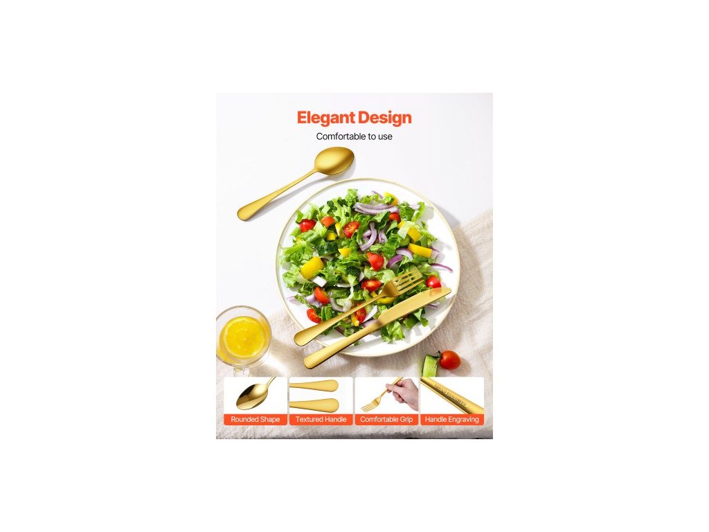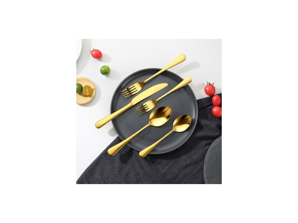Typ: Dezertní lžíce, Jídelní lžíce, Jídelní nože, Dezertní vidličky, Jídelní vidličky, Barva: Zlatá, Číslo modelu položky: 1010-100P-G, Hmotnost výrobku: 9,3 lbs / 4,28 kg