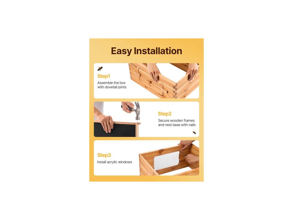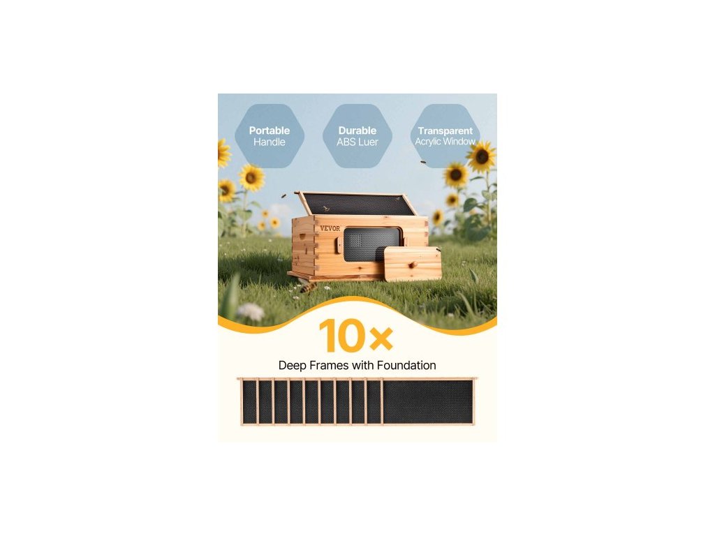 Sada pro hluboký úl, 100% přírodní jedlové dřevo s nátěrem včelím voskem, sada úlu Langstroth s 10 rámky a základy, průhledná akrylová okénka pro začátečníky i profesionální včelaře.