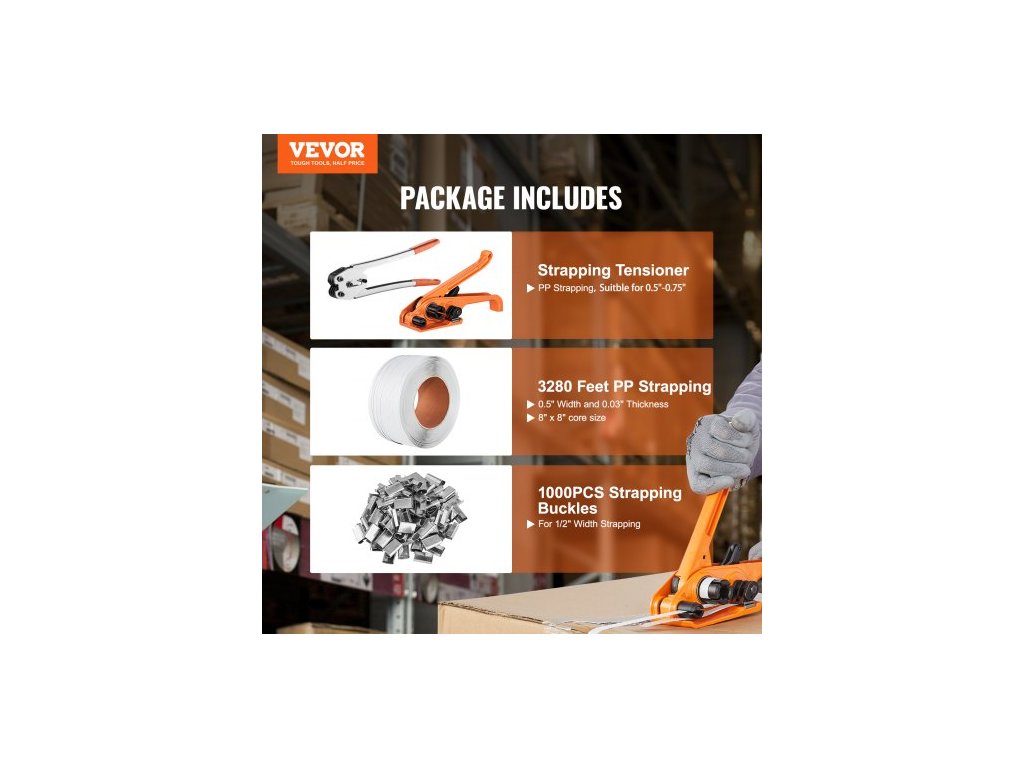 Materiál čepele: 65Mn,Počet spon: 1000,Rozměry svářečky pásky: 15,16" x 1,77" x 4,72"/385 x 45 x 120 mm,Hlavní barvy: oranžová, černá, stříbrná,Použitelná šířka: 1/2"-3/4" (12,7-19,05 mm),Materiál pásky: PP,Rozměry napínače pásky: 10,04" x 2,76" x 6,30"/255 x 70 x 160 mm,Délka pásky: 3280 stop/1000 m,Materiál hlavního nástroje: Hliníková slitina, Q235,Tloušťka pásky: 0,03"/0,8 mm,Číslo modelu položky: PP13-2,Hmotnost výrobku: 27,8 lbs/12,6 kg,Materiál spony: Q235,Barva pásky:Bílá,Šířka pásky: 1/2" (12,7 mm),Mezní napětí PP pásky: 300 lbs/136 kg