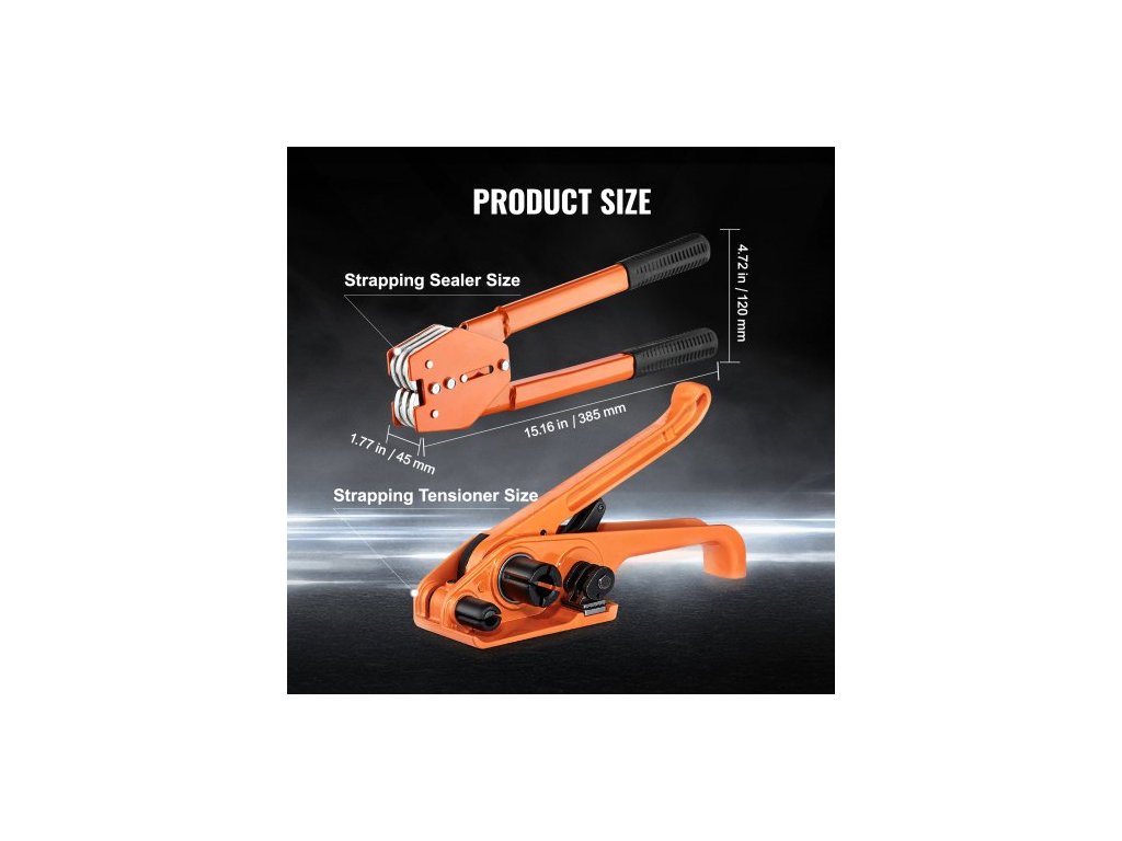 Počet přezek: 300 ks, Mezní napětí pásky: 500 kg, Délka pásky: 300 m, Číslo modelu položky: P19, Rozměry svářečky pásky: 385 x 45 x 120 mm, Hmotnost výrobku: 9,24 kg, Materiál: PET páska