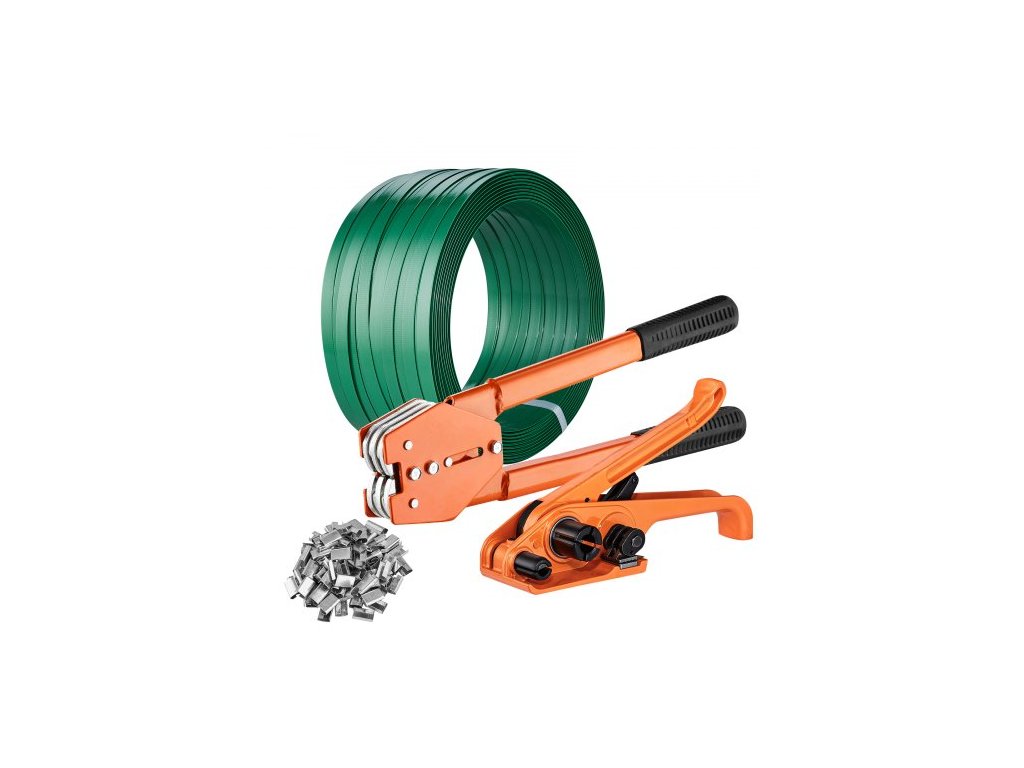 Sada páskování s napínačem pásky, nástrojem pro svářečku pásky, PET páska o délce 304,8 m, 300 kovových svářeček, sada pro páskování palet, páskování obalů, páskování pro balení