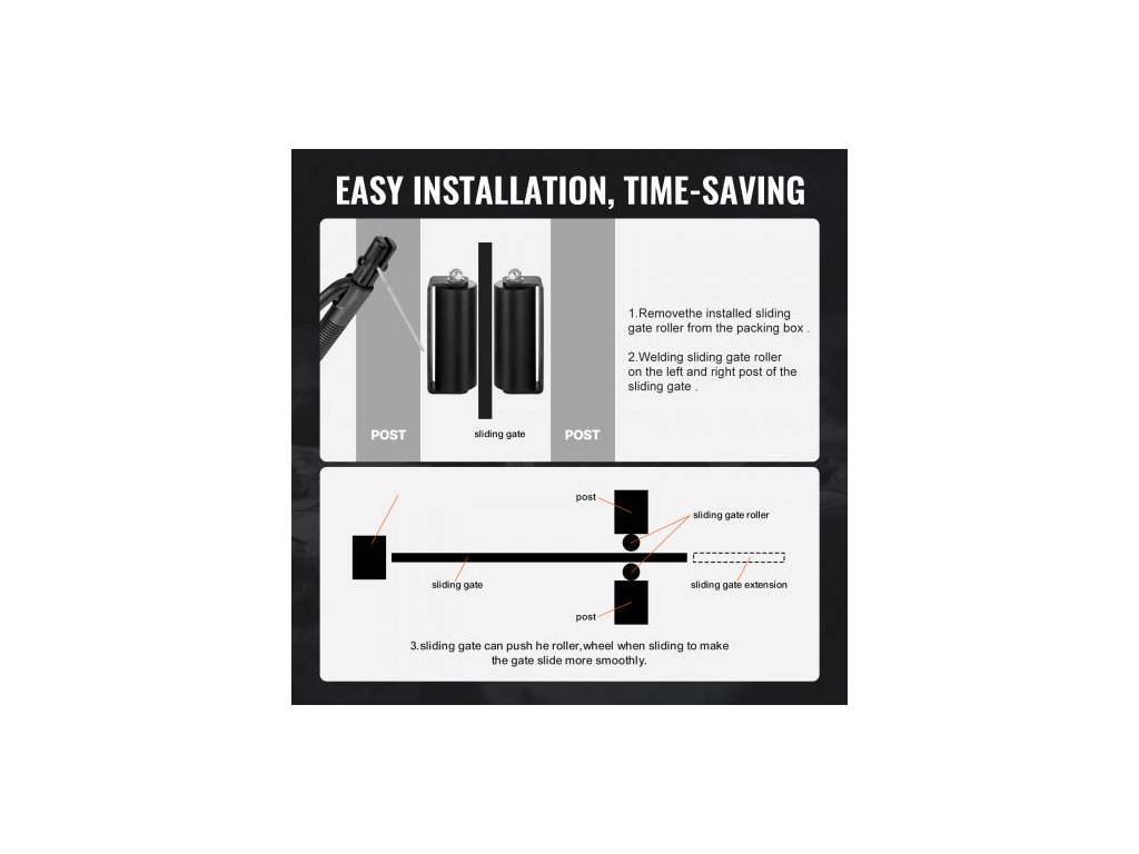Sada pro posuvné brány , sada kování pro rolovací bránu 6”, konzola typu C, odolné kladky pro posuvné brány pro zárubně Connect Tracks, vodicí kladka pro posuvné brány a rolovací vrata, černá