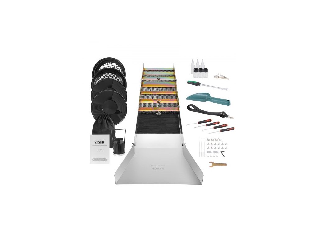 Sada pro rýžování zlata s stavidlem, 127 cm hliníkové vybavení pro těžbu zlata, 23dílná sada pro hledání zlata se zlatou pánví, klasifikační síto, separační magnet, batoh se stahovací šňůrkou a příslušenství