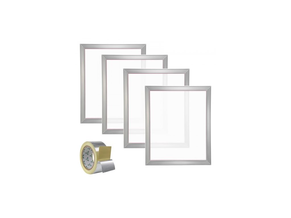 Sada pro sítotisk , 4 kusy hliníkových rámů pro sítotisk, rám pro sítotisk 20x24 palců s hustotou ok 355, vysokopevnostní nylonovou síťovinou a těsnicí páskou pro potisk triček.