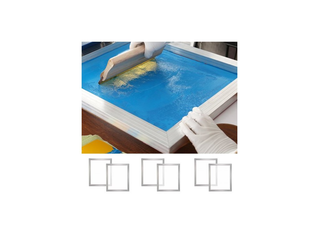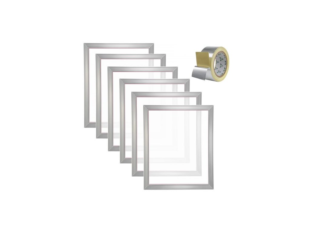 Počet sítotiskových rámů: 6,Materiál síťoviny: Polyester,Tloušťka rámu: 2,5 cm,Počet ok: 160,Materiál rámu: Hliníková slitina,Čistá hmotnost: 3,5 kg,Rozměry rámu: 50,8 x 61 cm,Rozměry balení: 62 x 52 x 16,5 cm