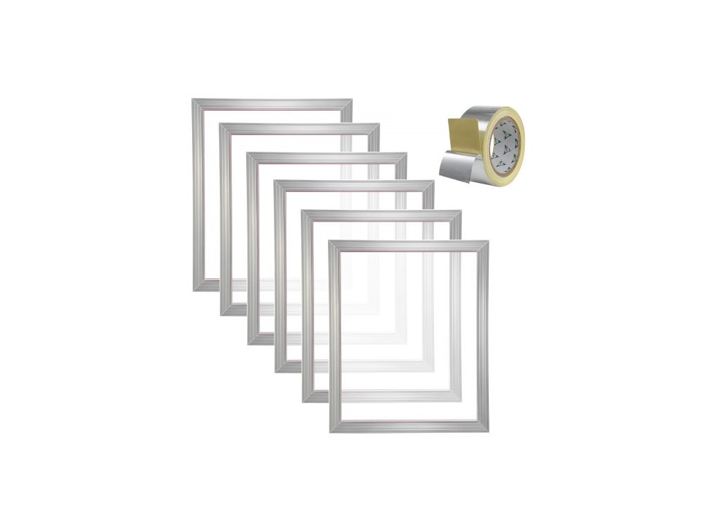 Počet sítotiskových rámů: 6,Materiál síťoviny: Polyester,Tloušťka rámu: 2 cm,Počet ok: 110,Materiál rámu: Hliníková slitina,Čistá hmotnost: 3 kg,Rozměry rámu: 40,6 x 50,8 cm,Rozměry balení: 53,5 x 42 x 16,5 cm
