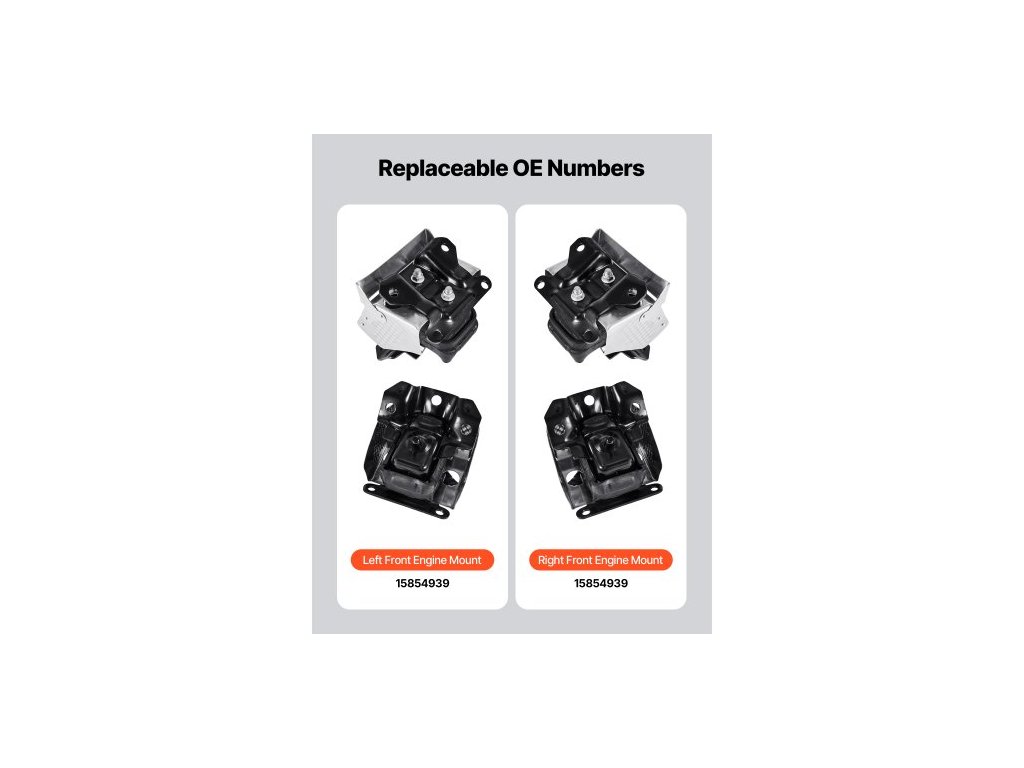 Obsah sady: Levý přední a pravý přední úchyt motoru, originální číslo: A5365, A5365, modelové číslo položky: TZ0004, množství: 2 ks, kompatibilní vozidla: Chevrolet Silverado 1500 V8 5.3L (2007-2013), materiál: železo, hliník, rozměry položky: 6,1 x 6,7 x 7,3 palce / 155 x 170 x 185 mm, hmotnost netto: 9,7 liber / 4,4 kg