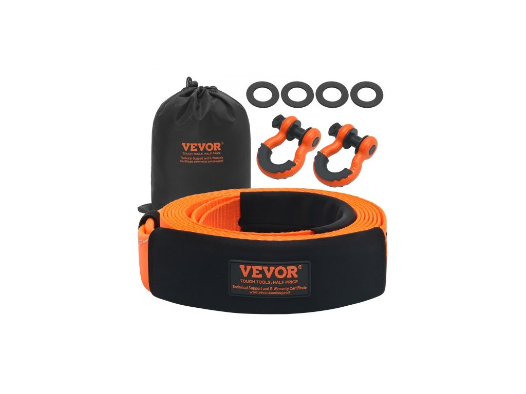 Sada pro vyprošťování tažného popruhu pro vysoké zatížení 3" x 20 stop/7,6 cm x 6,1 m (MBS-36 000 liber/16 329 kg) Popruh pro naviják Tree Saver, trojitá zesílená smyčka a ochranné návleky a úložný vak, 3/4" (1,9 cm) D-kroužky, pro nákladní automobily, jeep, SUV, čtyřkolky