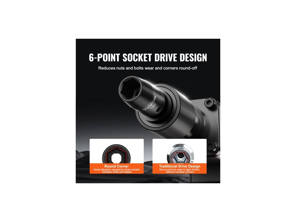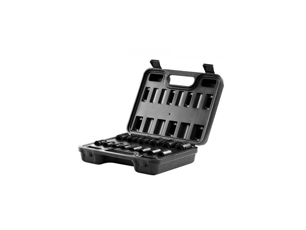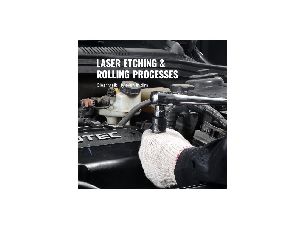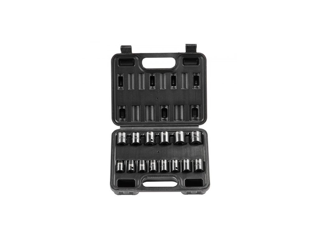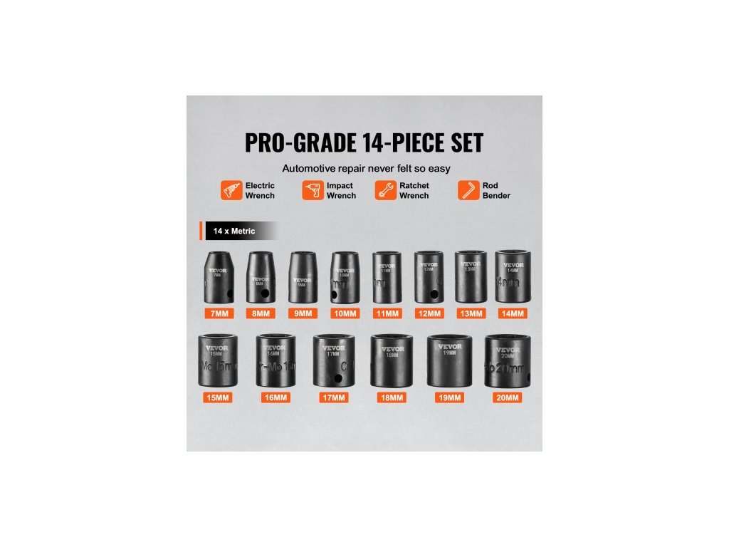Sada rázových nástrčných klíčů 3/8" Drive, 14dílná sada mělkých nástrčných klíčů, metrické 7-20 mm, 6hranná legovaná ocel Cr-Mo pro opravy automobilů, snadno čitelné označení velikosti, robustní konstrukce, včetně úložného pouzdra
