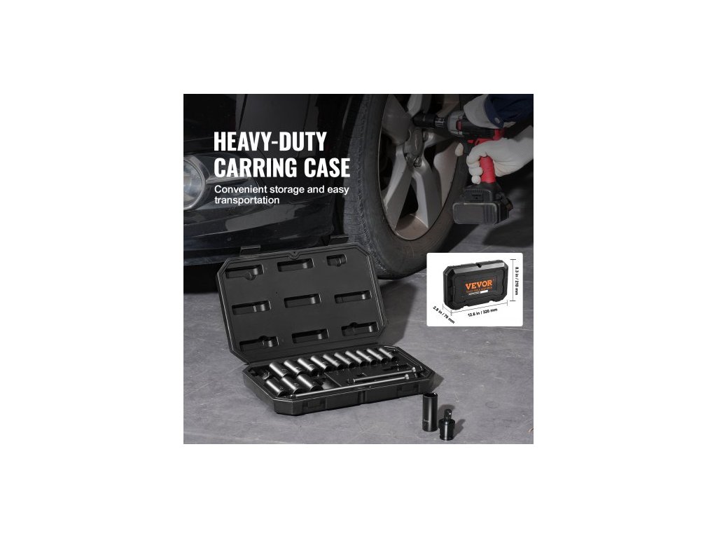 Sada rázových nástrčných klíčů 3/8" Drive, 18dílná sada hlubokých nástrčných klíčů, metrické 8-22 mm, 6hranná legovaná ocel CR-V pro opravy automobilů, snadno čitelné označení velikosti, robustní konstrukce, včetně úložného pouzdra