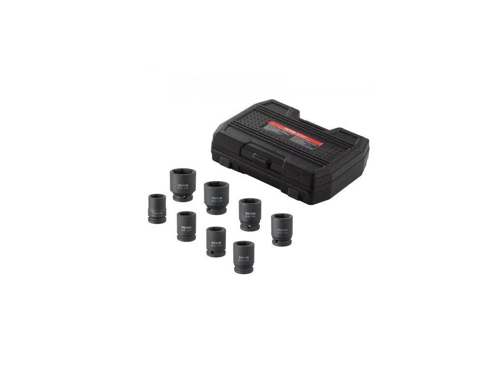 Sada rázových nástrčných klíčů na matice nápravy, pohon 3/4", 6hranná, 8dílná, metrická sada nástrčných klíčů na vřetenové matice, tepelně zpracovaná CR-MO sada velkých nástrčných klíčů s úložným pouzdrem, pro opravy automobilů, demontáž nebo249