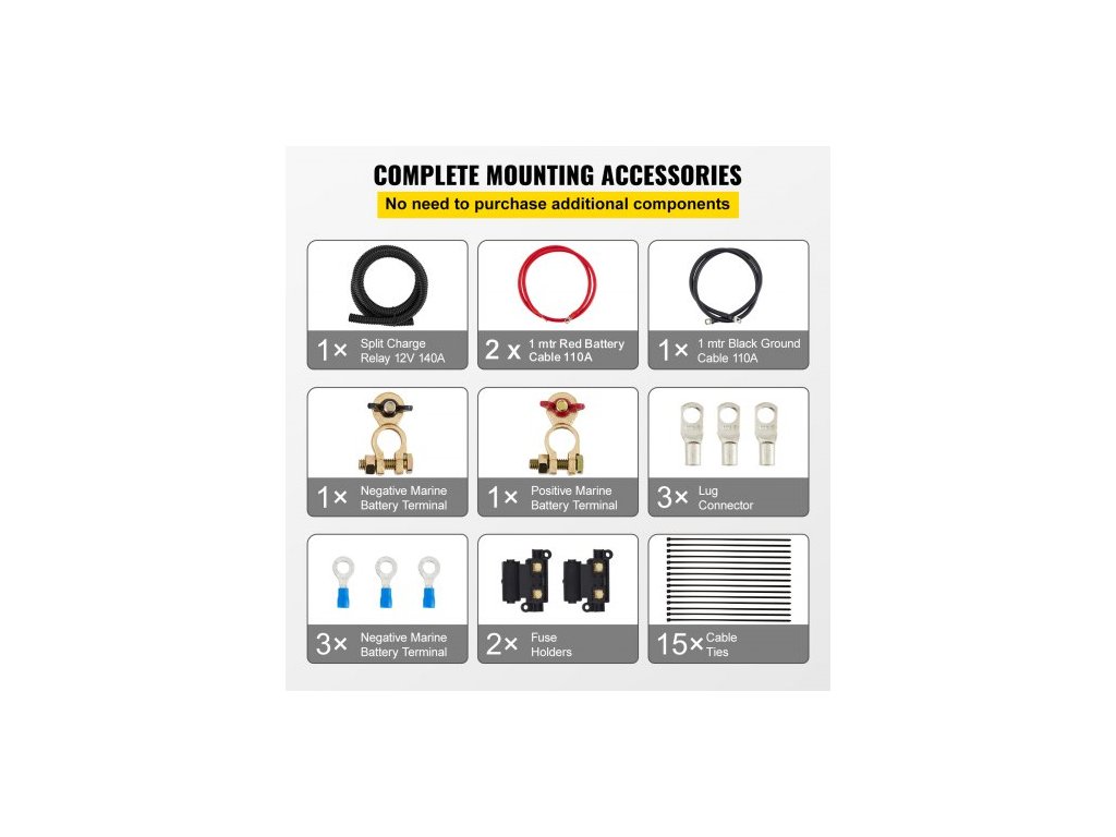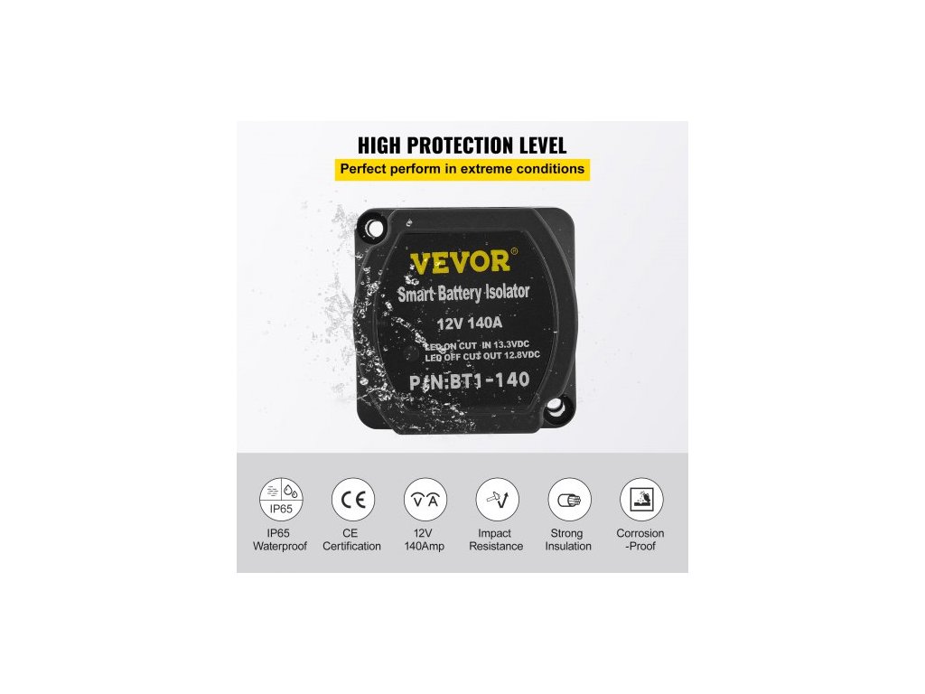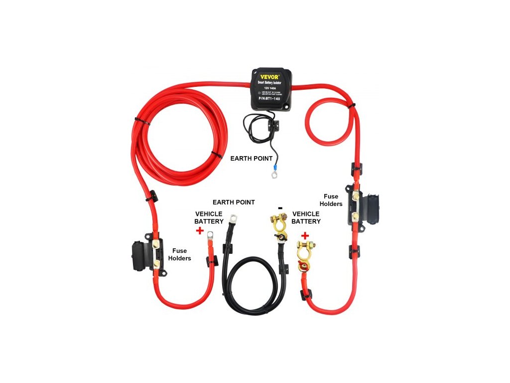 Sada relé s děleným nabíjením, 2 m 12V, automatický duální izolátor baterie s relé pro snímání napětí 140AMP VSR, kompatibilní s obytnými vozy, loděmi, automobily, nákladními vozy, karavany, obytnými vozy, jachtami, čtyřkolkami, UTV a loděmi, dílnami