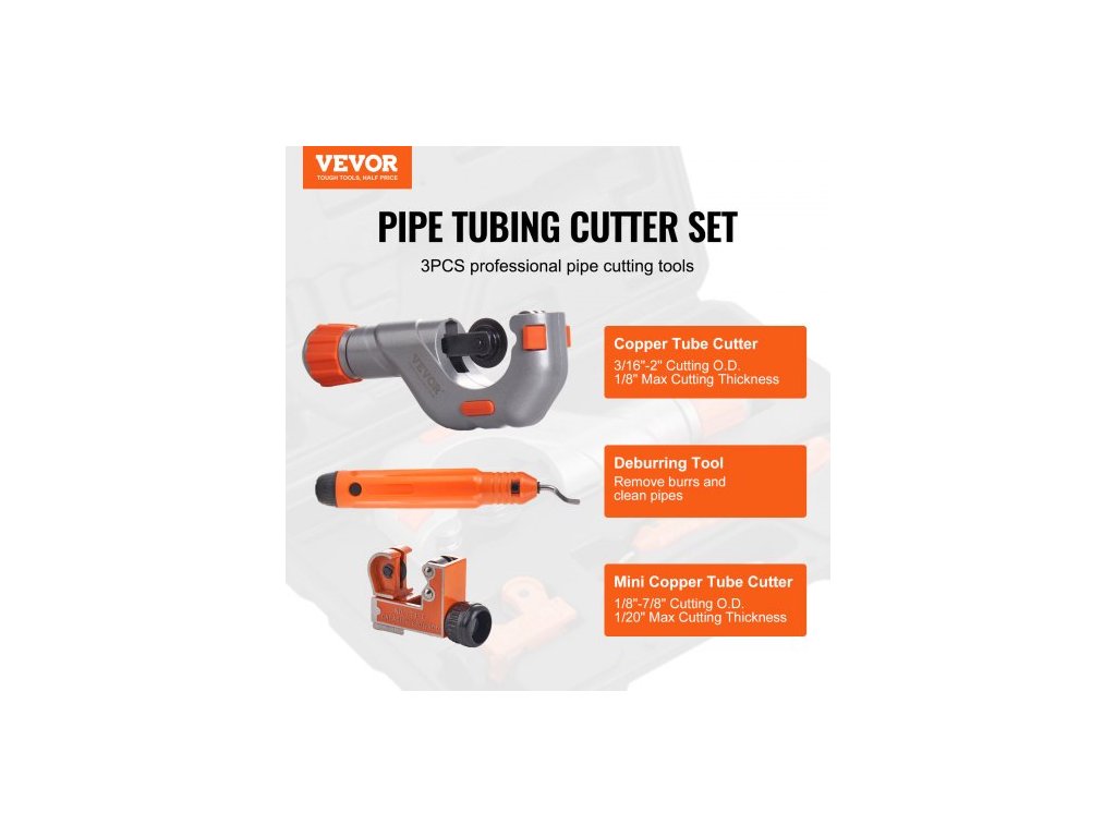 Sada řezaček trubek 3dílná - Vysoce odolný řezák trubek o vnějším průměru 3/16"-2", mini řezák trubek 1/8"-7/8" a nástroj na odjehlení, profesionální sada řezaček trubek pro nerezové, měděné, hliníkové a plastové trubky