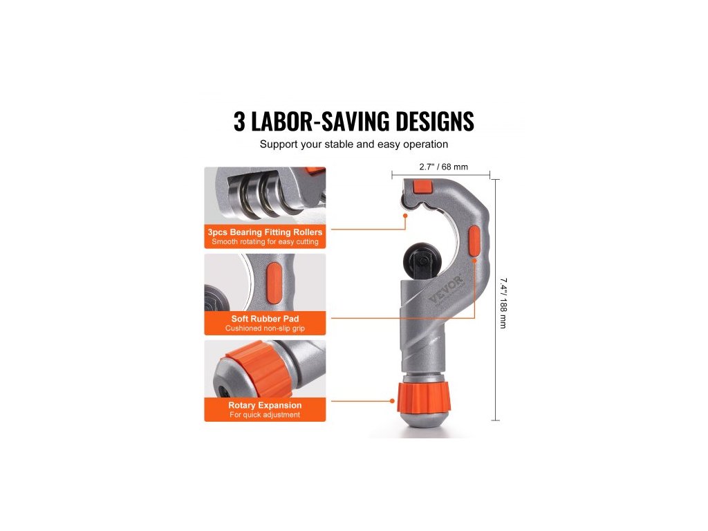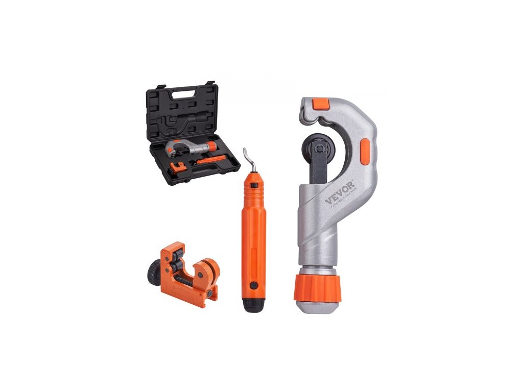 Sada 3dílných řezaček trubek - Vysoce odolný řezák trubek 3/16"-2" vnější průměr, mini řezák trubek 1/8"-7/8" a nástroj na odhrotování, Profesionální sada řezaček trubek pro nerezové, měděné, hliníkové a plastové trubky