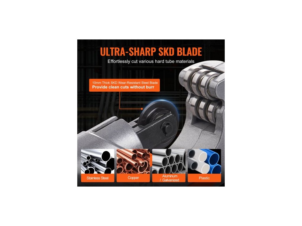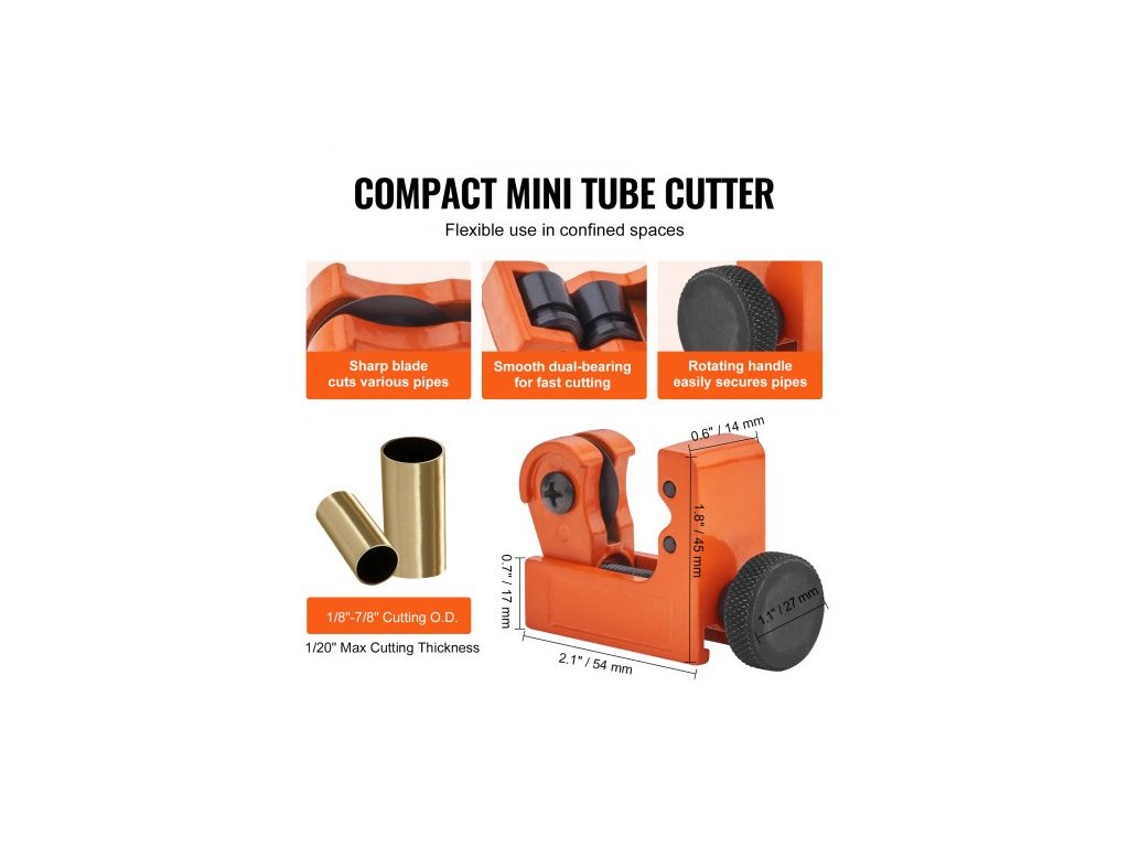 Materiál čepele: Ocel odolná proti opotřebení SKD,Model položky: CT-650,Hrubá hmotnost: 2,29 lb / 1,04 kg,Rozsah řezání mini řezačky měděných trubek: 1/8" - 7/8" vnější průměr ; Maximální tloušťka 1/20", Rozsah řezání řezačky měděných trubek: vnější průměr 3/16" - 2"; maximální tloušťka 1/8", Tloušťka čepele: 0,4 palce / 10 mm, Rozměry sady nářadí: 10,8 x 7,3 x 2,2 palce / 275 x 185 x 55 mm, Velikost řezačky měděných trubek: 7,4 x 2,7 palce / 188 x 68 mm, Velikost čepele: vnější průměr 1,2 palce / 30 mm, Použitelné materiály trubek: nerezová ocel, měď, hliník, pozinkované, plastové trubky, Čistá hmotnost: 1,3 lb / 0,6 kg, Hlavní materiál: hliníková slitina