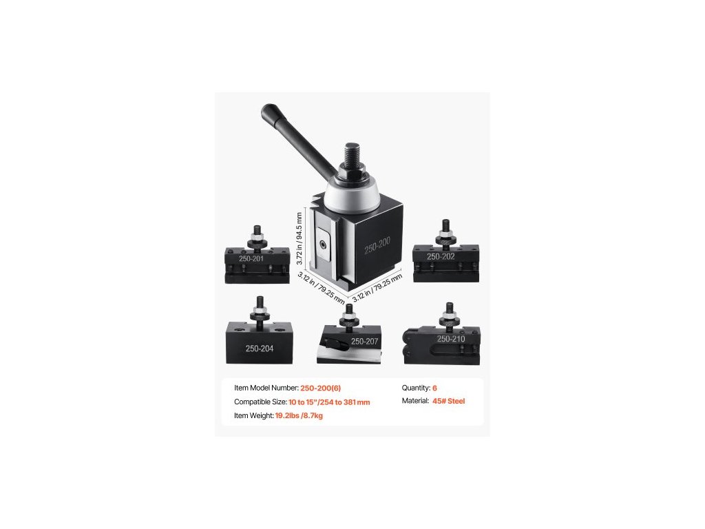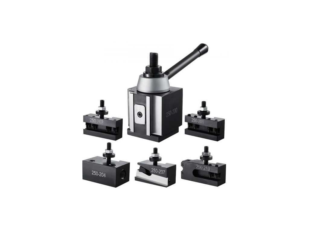 Sada rychlovýměnných nástrojových sloupků , 6 kusů, obsahuje držáky soustružnických nástrojů, klínový nástrojový sloupek s příslušenstvím pro držáky soustružnických nástrojů, pro mini soustruh a kovový soustruh, výkyv 254-381 mm (10"-15"), odolný