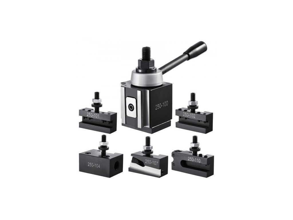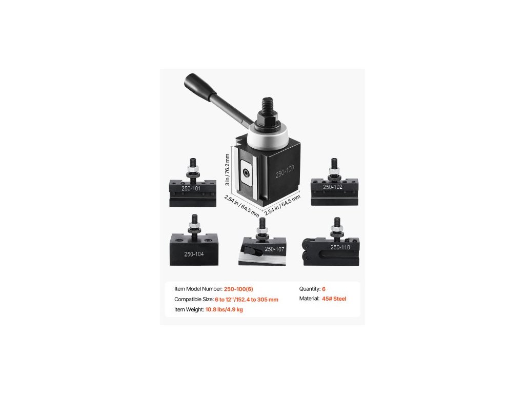 Sada rychlovýměnných nástrojových sloupků , 6 kusů, obsahuje držáky soustružnických nástrojů, klínový nástrojový sloupek s příslušenstvím pro držáky soustružnických nástrojů, vhodné pro mini soustruh a kovový soustruh s výkyvem 6"-12", odolný249