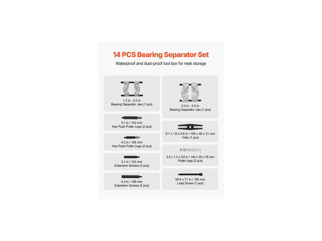 Sada stahováků ložisek , 14dílný oddělovač ložisek s nosností 5 tun, sada pro demontáž ložisek pastorku s čelistmi 50 mm a 70 mm, sada stahováků ložisek, sada nástrojů pro dělení ložisek pro vysoké zatížení s pouzdrem