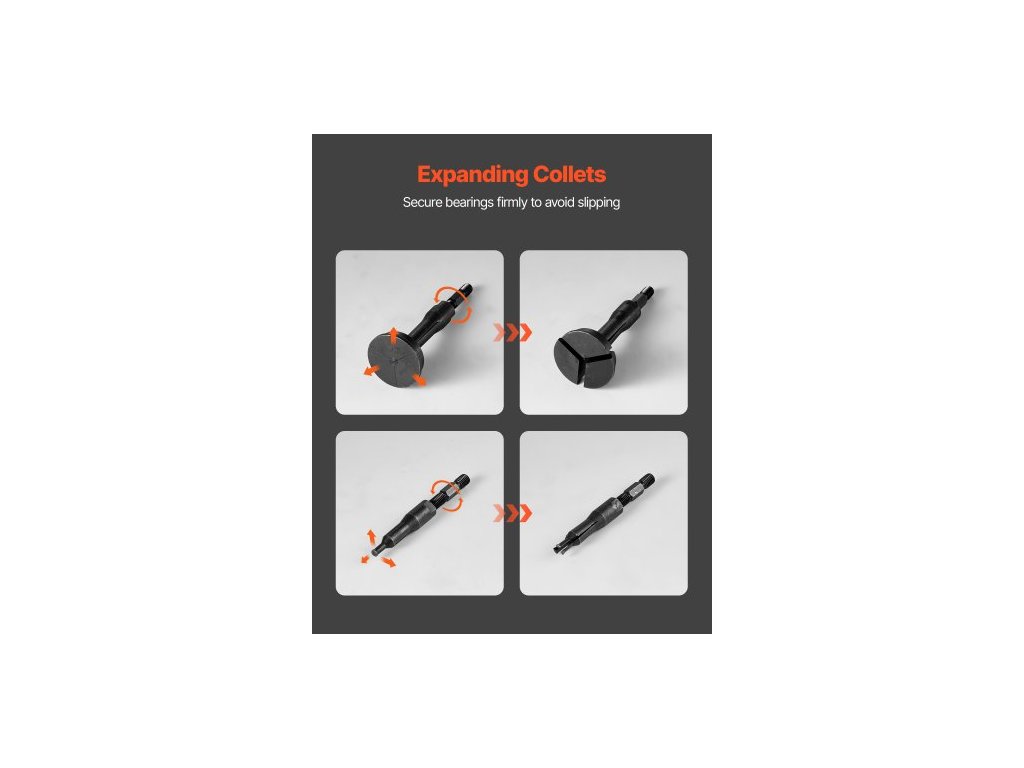 Sada stahováků ložisek do slepých otvorů , 16dílná sada stahováků vnitřního ložiskového kroužku a těsnění, 16dílná sada stahováků s pilotní vložkou a vnitřním ložiskem s 10 dělenými kleštinami a protikusem