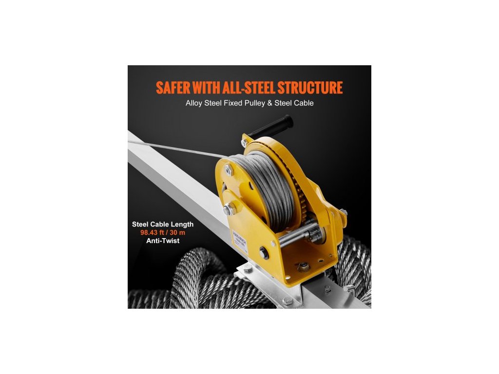 Horizontální tažná kapacita: 1800 lbs/816,4 kg, Nastavitelný rozsah délky nohou: 4,40-7,05 ft/1,34-2,15 m, Číslo modelu položky: HXRT-07, Hmotnost výrobku: 66,36 lbs/30,1 kg, Délka ocelového lana: 98,43 ft/30 m, Průměr ocelového lana: ?0,2 palce/?5 mm, maximální nosnost pro osobní zvedání: 180 kg