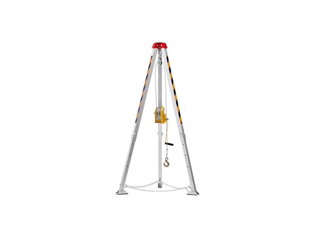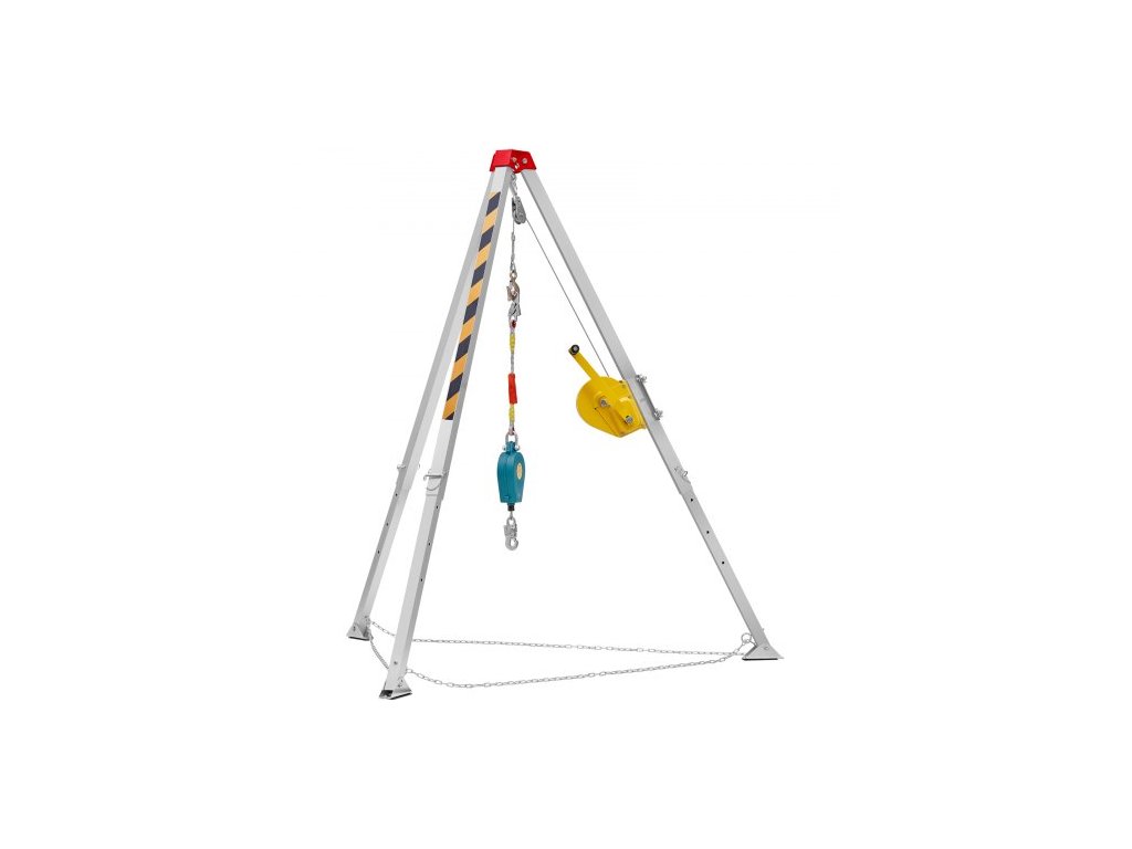 Sada stativu pro uzavřené prostory, naviják 816,4 kg, stativ pro uzavřené prostory s nohami 2,13 m a lanem 30 m, záchranný stativ pro uzavřené prostory s ochranou proti pádu 10 m, postroj, úložná taška pro tradiční uzavřené prostory