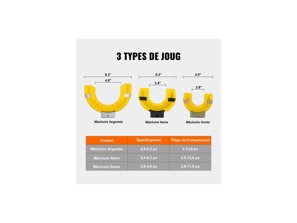 Kompatibilní s: 22 mm/ 7/8" objímkou, velikost černé čelisti: 3,4"- 12,8" /85-325 mm, velikost žluté čelisti: 2,9"- 12,6" /75-320 mm, Model: XC4027A, Materiál: ocel 45#, stříbrná velikost čelisti: 2,6"- 11,8" /65-300 mm, max. nosnost: 9920 lbs/4500 kg, čistá hmotnost: 34,8 Hmotnost 15,8 kg, Rozměry produktu: 520 x 424 x 105 mm