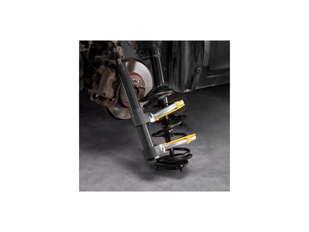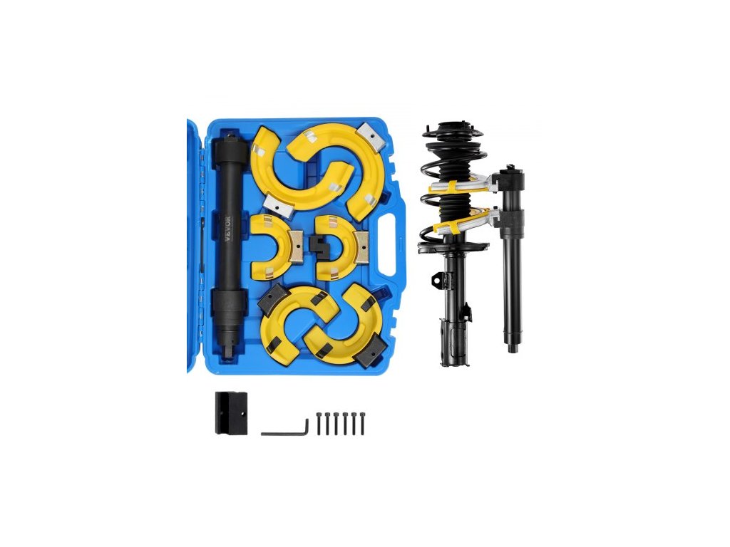 Sada stlačovačů pružin , sada stlačovačů pružin vzpěr Macpherson, nástroj pro vytahování a demontáž vyměnitelných vinutí vzpěr vidlice, se žlutým ochranným pouzdrem a přepravním pouzdrem