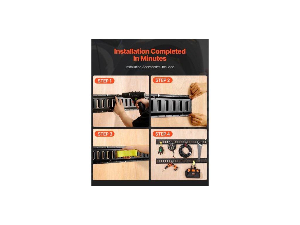 Sada upevňovacích lišt E Track, 30dílná sada elektrických kolejnic 152,4 cm obsahuje 4 ocelové kolejnice, 2 jednodrážkové, 8 O-kroužků, 8 úchytů s D-kroužky a 8 koncových krytek, příslušenství pro upevnění nákladu, motocyklů a kol.