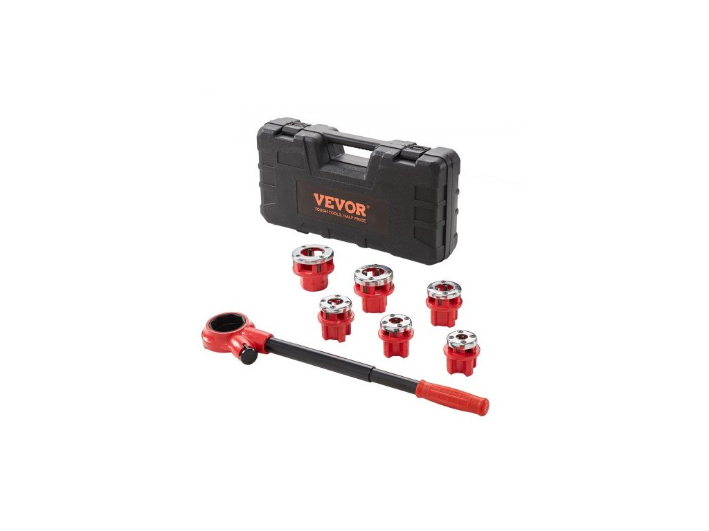 Sada závitořezů s ráčnou, ruční ráčna na závitování trubek 6,4 mm NPT - 32 mm NPT, přenosná sada závitořezů s 6 ks závitořezných čelistí NPT, úložné pouzdro pro pozinkované hliníkové a měděné trubky