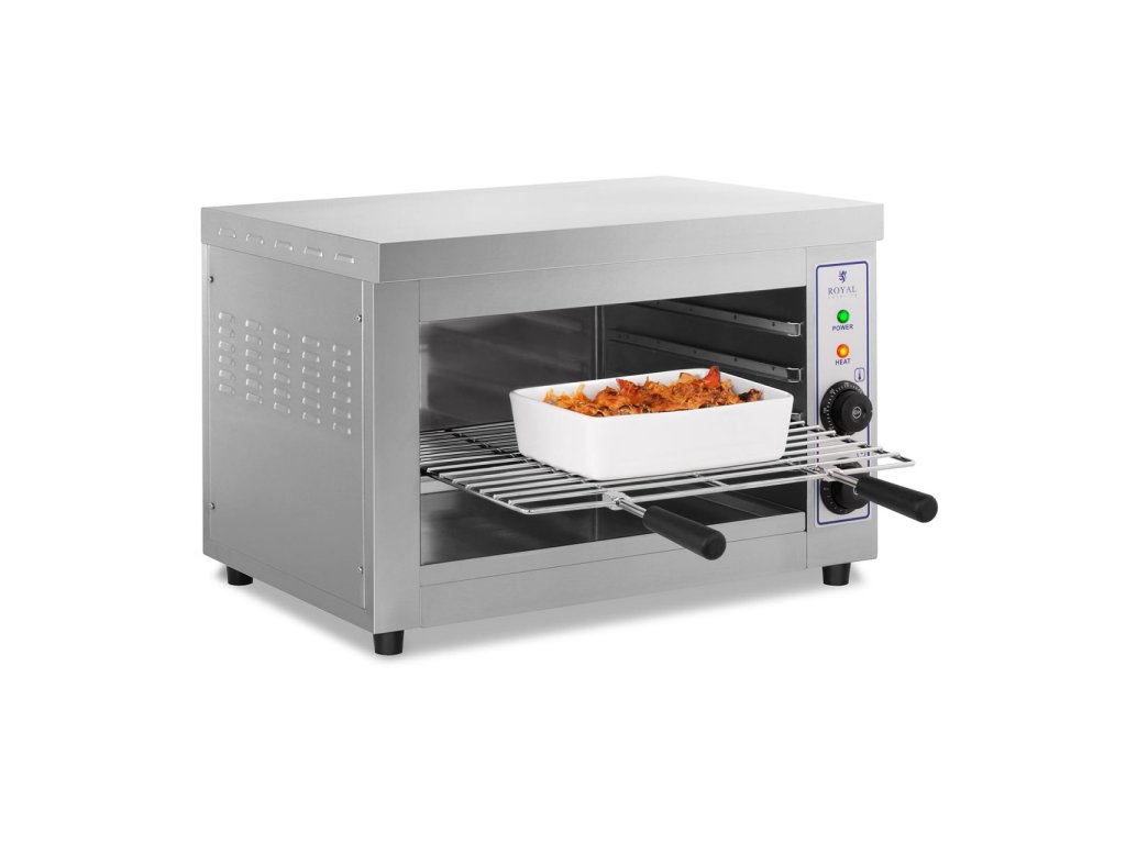 Touster Salmader firmy Royal-Cateringpřesvědčuje svým moderním vzhledem a velice jednoduchou obsluhou. Má obrovský rošt, který umožňuje maximální jakost. Pro zajištění bezpečnosti a komfortu obsluhy je zařízení vybaveno regulátorem času a teploty s kontrolkami. Touster je vyhotovený ze 100% ušlechtilé oceli a zahřívá se maximální rychlostí.