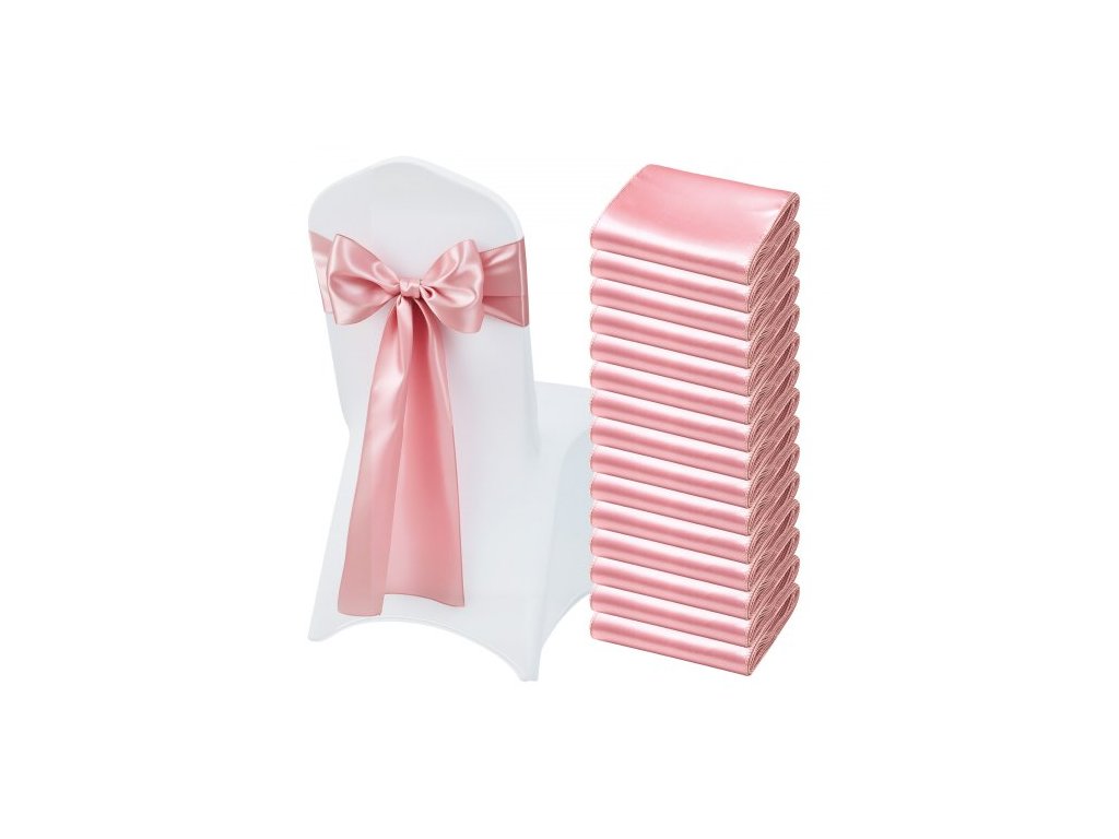 Saténové mašle na židle, 50 ks stuh na židle, mašle na zadní stranu, 7 x 108 palců, růžovo-zlatá svatební dekorace na hostinu, pro svatební obřad, oslavu narození miminka, večírek, banket, dekorace na židli