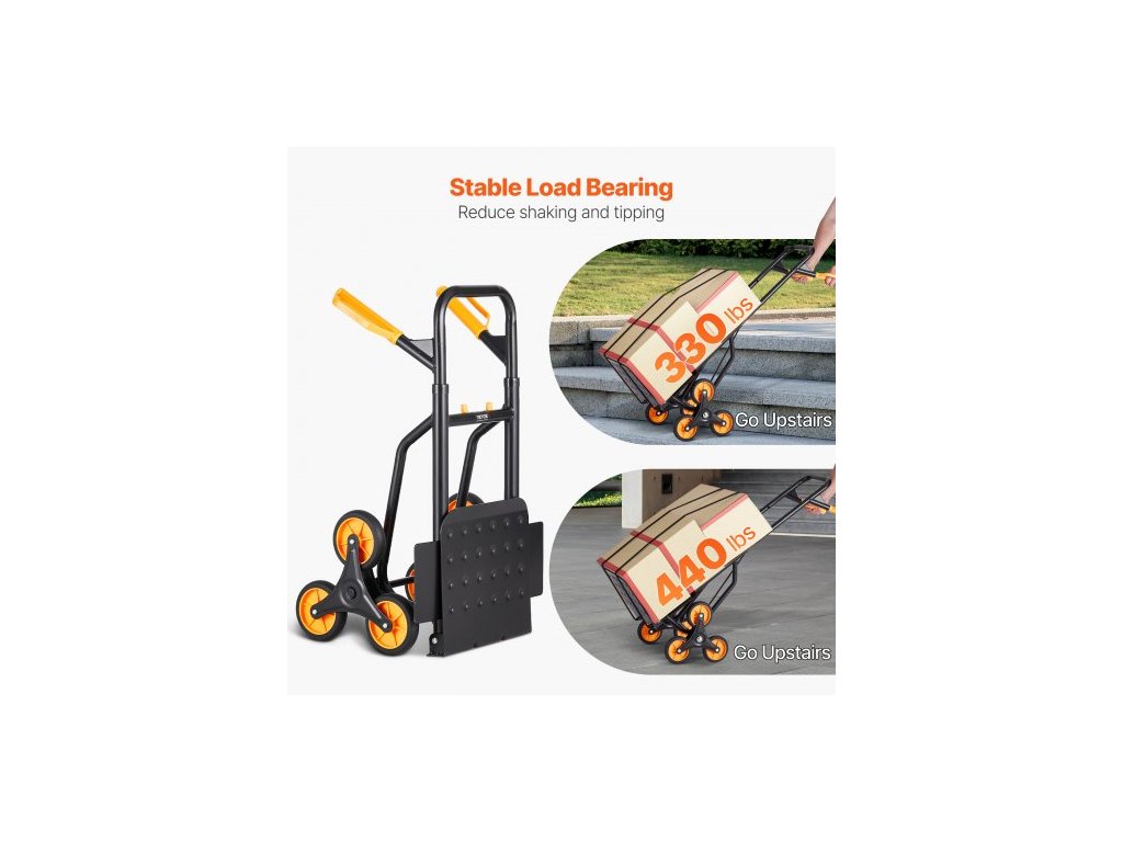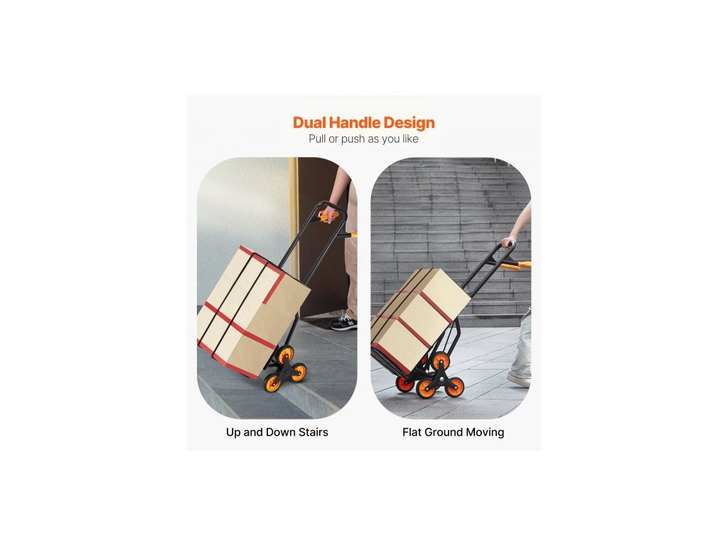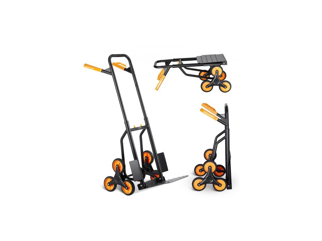 Schodolezecký vozík , nosnost 200 kg, ruční vozík s vozíkem, těžký skládací vozík s dvojitou rukojetí, 6 koly a 2 elastickými lany pro domácí kancelář, nákupy, stěhování, sklad