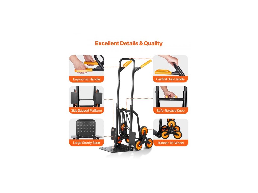 Nosnost na zemi: 200 kg, Rozměry v plně rozloženém stavu: 580 x 445 x 1085 mm, Číslo modelu: KT2027B, Průměr stoupajících kol: ?125 mm, Hmotnost výrobku: 9,5 kg, Rozměry ve složeném stavu: 775 x 445 x 320 mm, Materiál: Uhlíková ocel + guma + PP, Nosnost při lezení: 150 kg