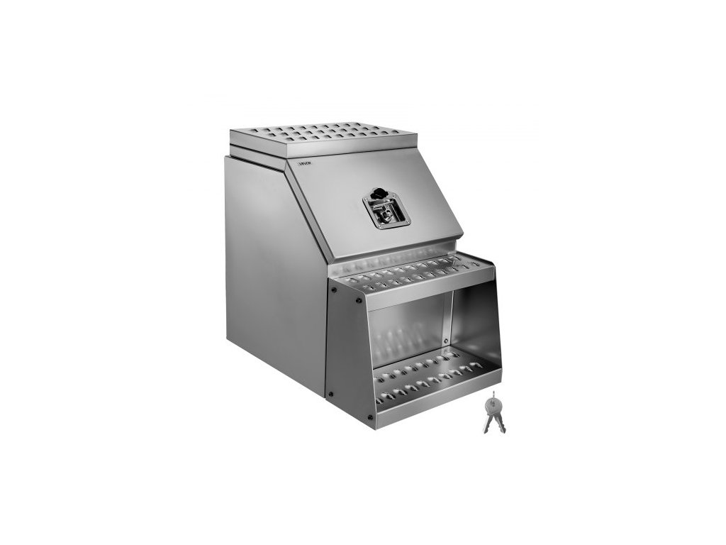 Schůdková schránka na nářadí pro kamiony, 457 x 695 x 645 mm, odolná hliníková schránka na nářadí, boční montáž, vodotěsná boční úložná schránka s T-rukojetí a klíči pro kamiony, plošinové návěsy