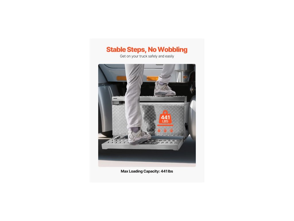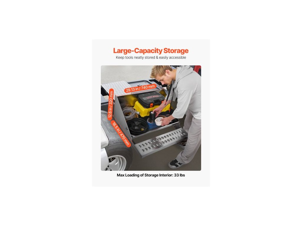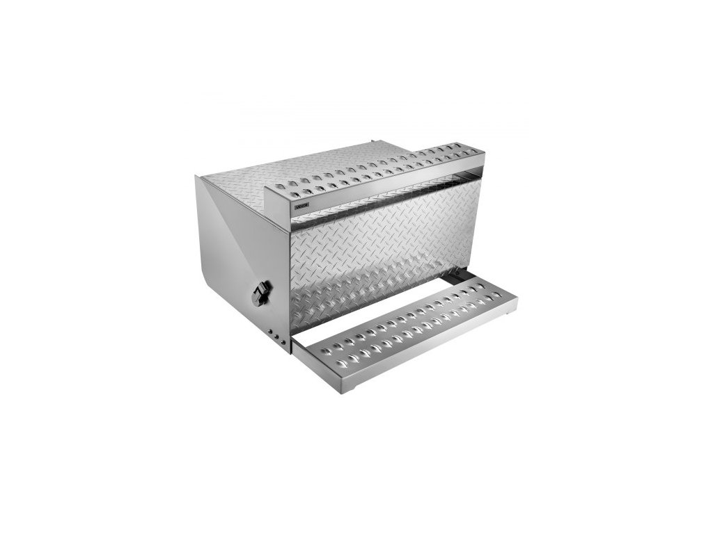 Nářadí pro kamiony, nářadí z hliníkové desky s diamantovým povrchem 790 x 770 x 485 mm, vodotěsné úložné nářadí s nástupním schodem do kabiny s tlumící západkou pro plošiny, jeřáby a kamiony