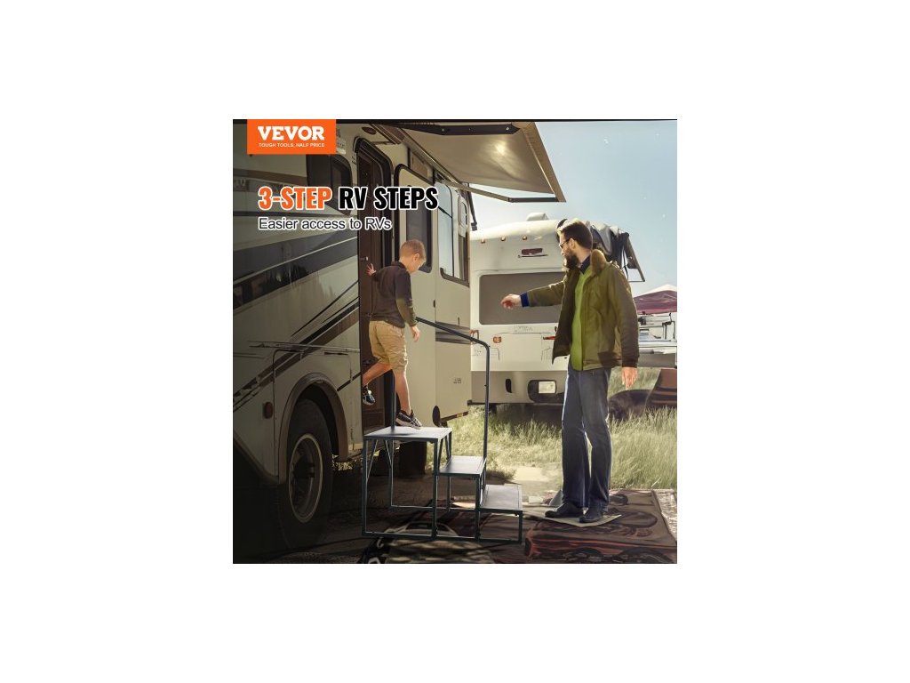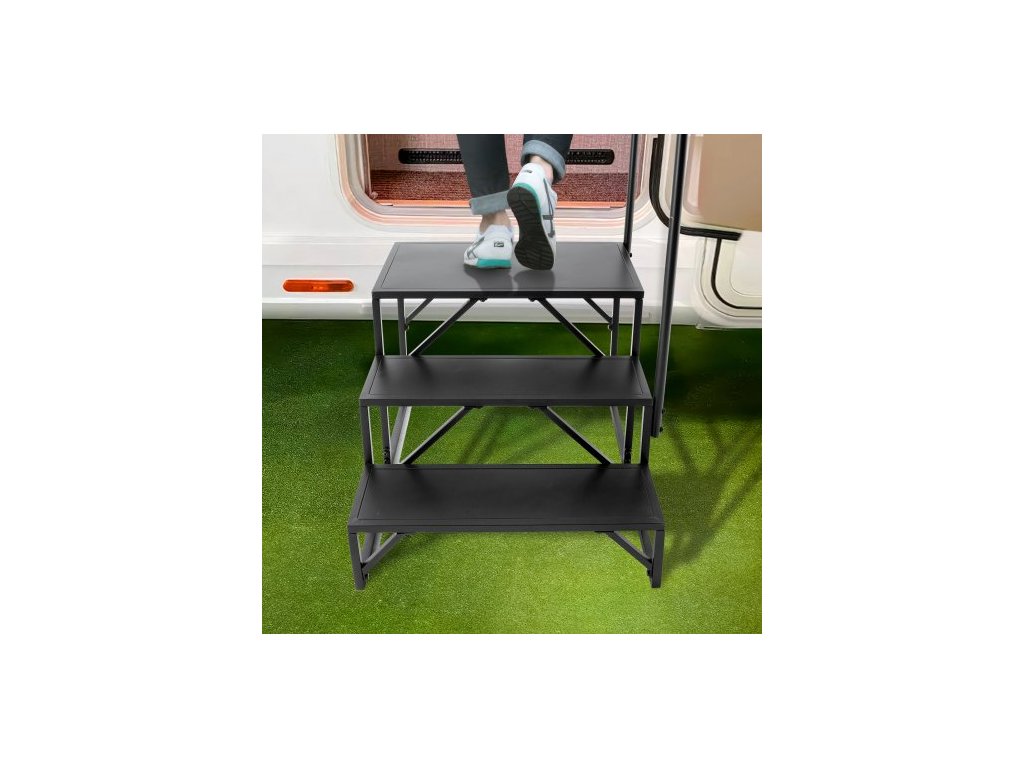 Schůdky pro obytné vozy, 3stupňové schody pro obytné vozy, nosnost 199,6 kg, zesílená uhlíková ocel, s madlem, protiskluzové schody pro bezpečný vstup a výstup, vhodné pro obytné vozy, přívěsy a karavany