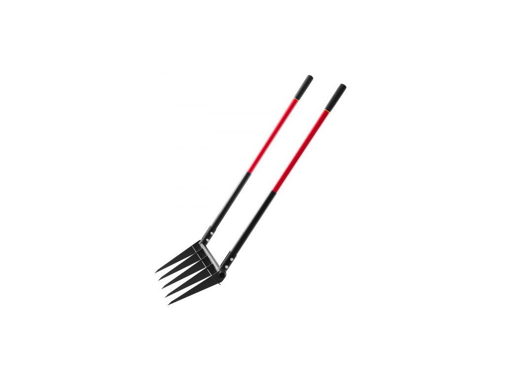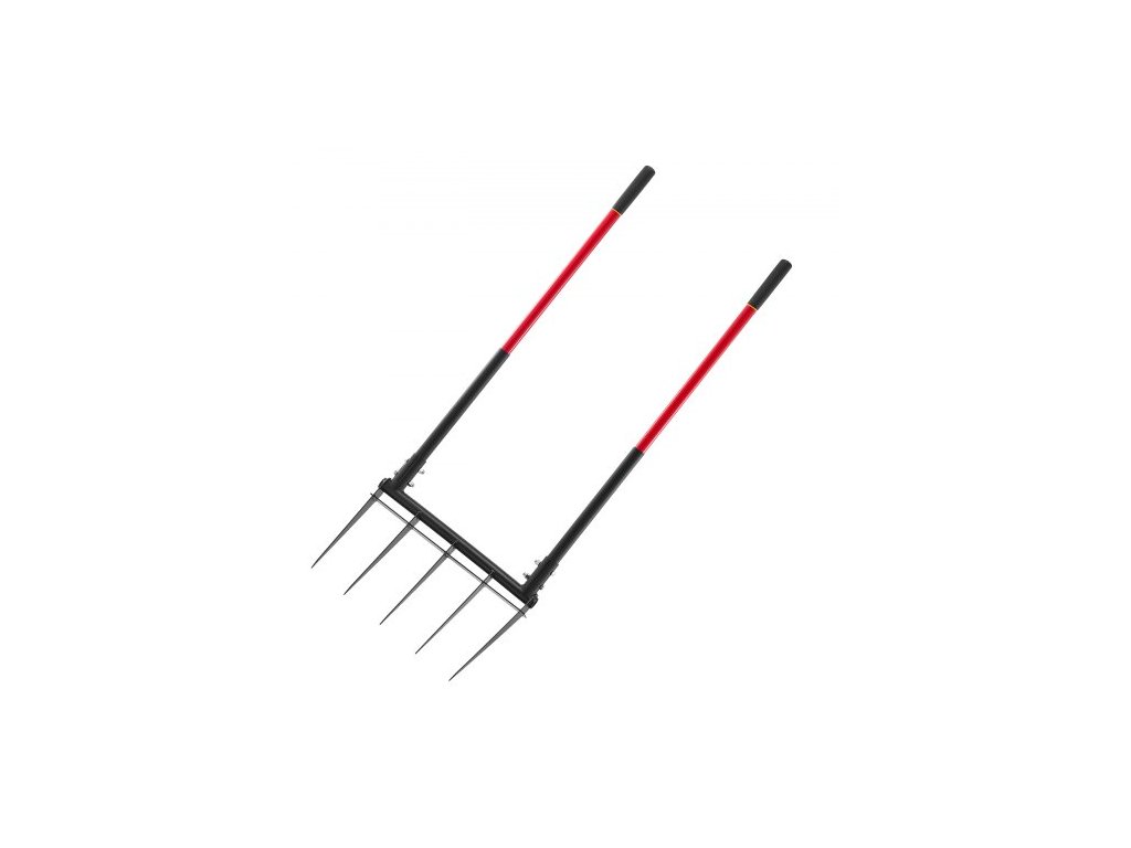 Široké vidle, 5hrtké vidle s dvojitými sklolaminátovými rukojeťmi, odolné zahradní vidle, ergonomický ruční kultivátor ve tvaru U, zahradní nástroj pro kompostování, přesazování a provzdušňování