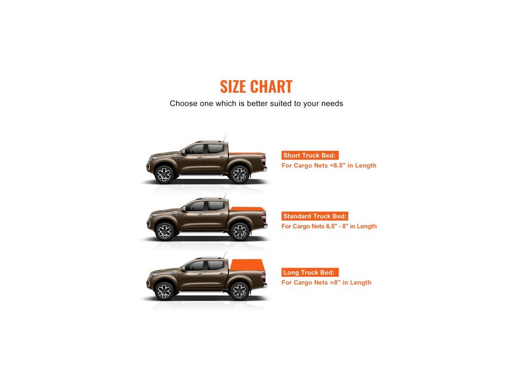 Síť Cargo Net, 72" x 57" (177 cm x 147 cm), těžká síť na korbu nákladního vozu, 4 nastavitelné popruhy s karabinami a pogumovanými háky, odolná, vhodná pro pickup, džíp, nákladní vůz, SUV, loď (černá)